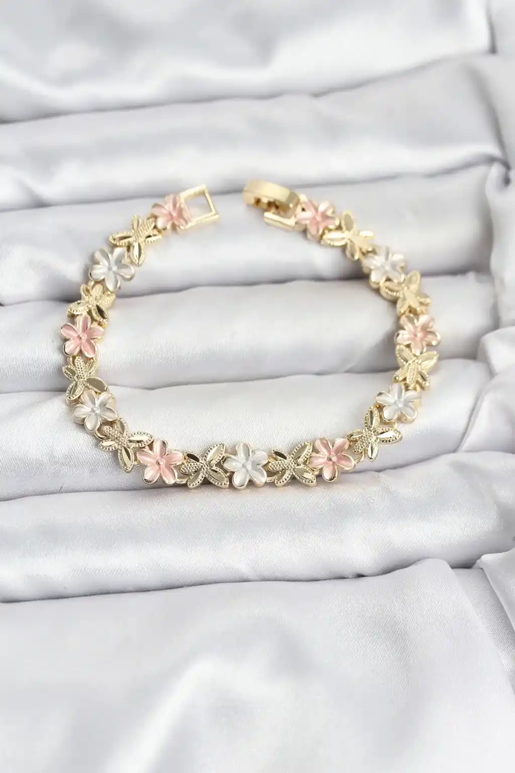 Lotus Model Pirinç Gold ve Pembe Renk Kadın Bileklik