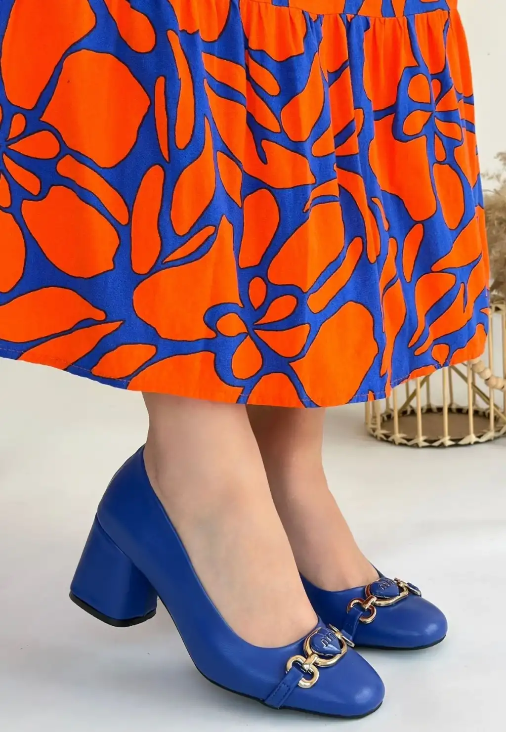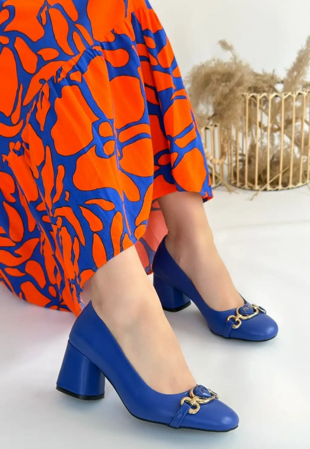 • LUCKY MAVİ CİLT TOPUKLU AYAKKABI