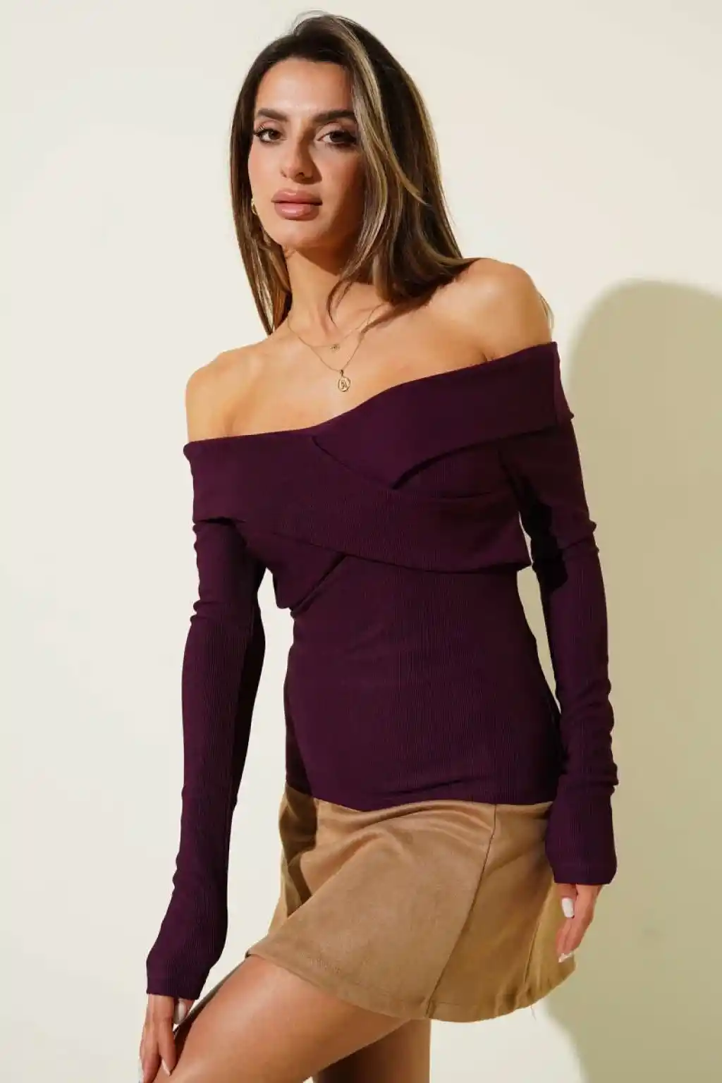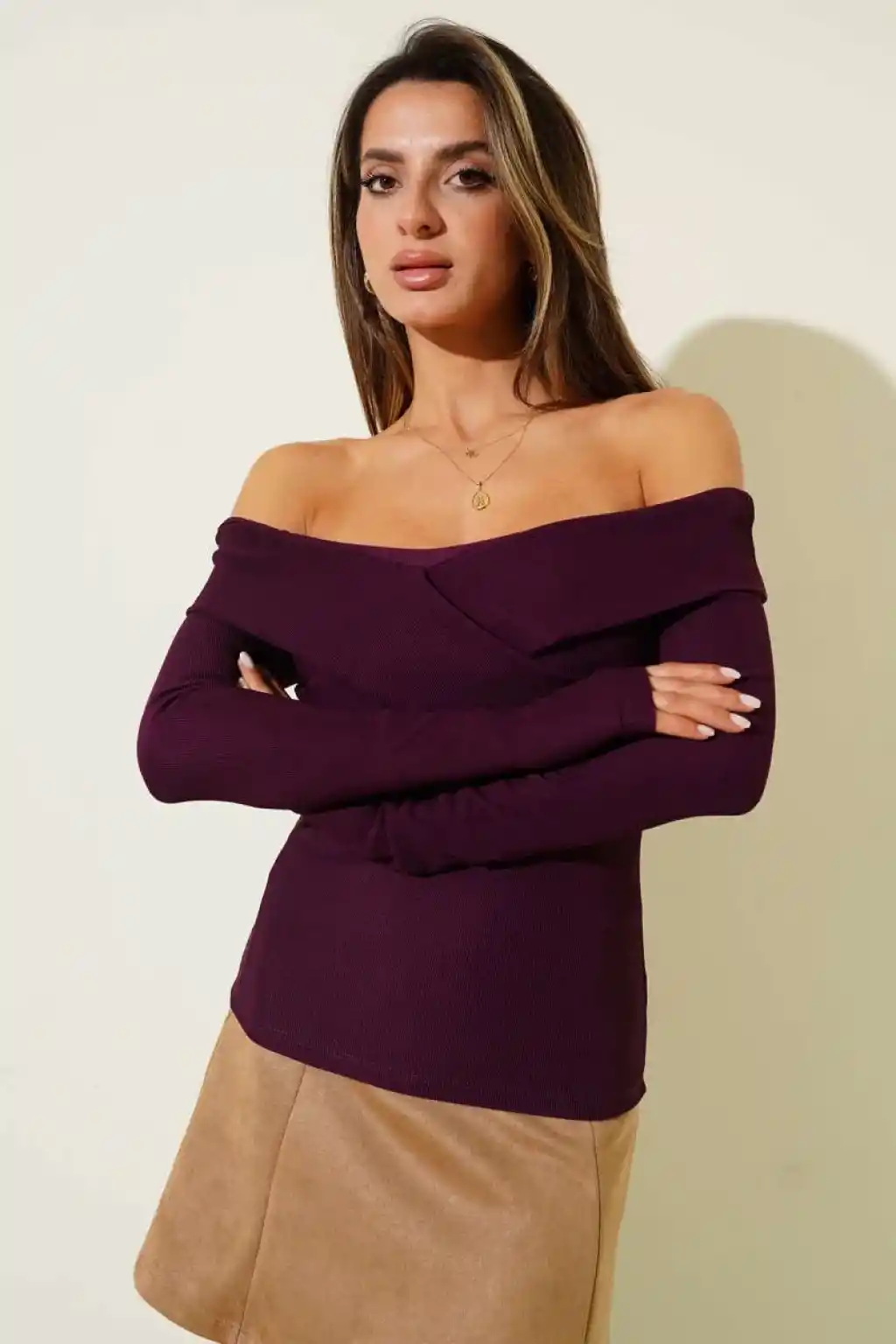 Madonna Çapraz Yaka Bluz mürdüm t4331