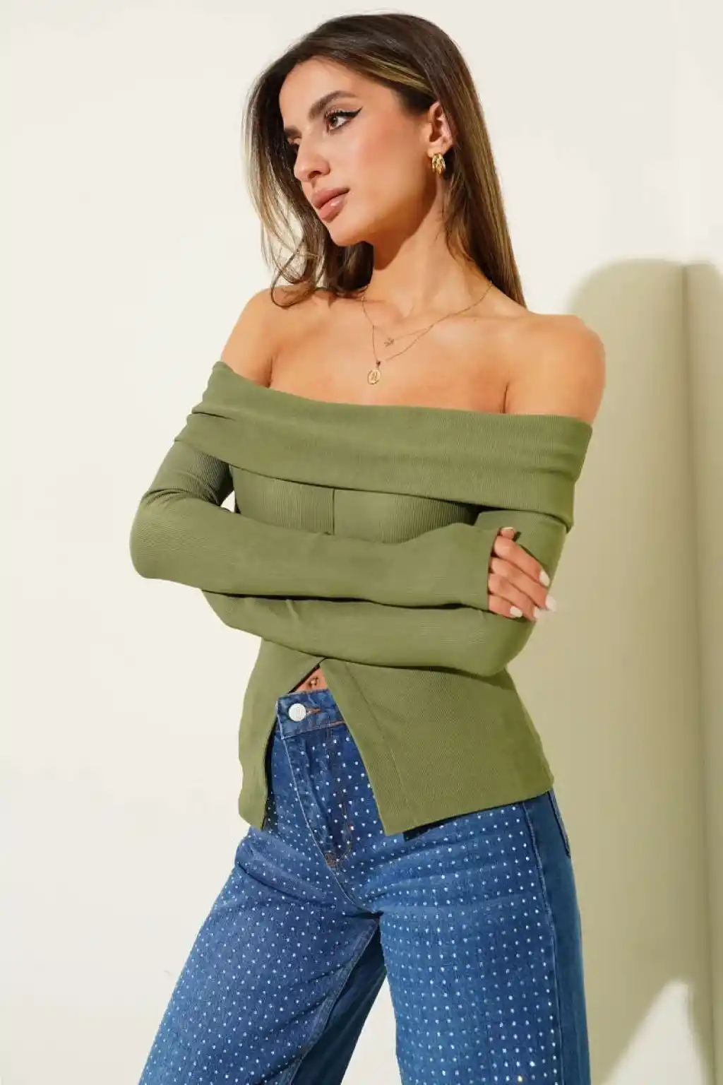 Madonna Yaka Düğmeli Bluz yeşil t4329