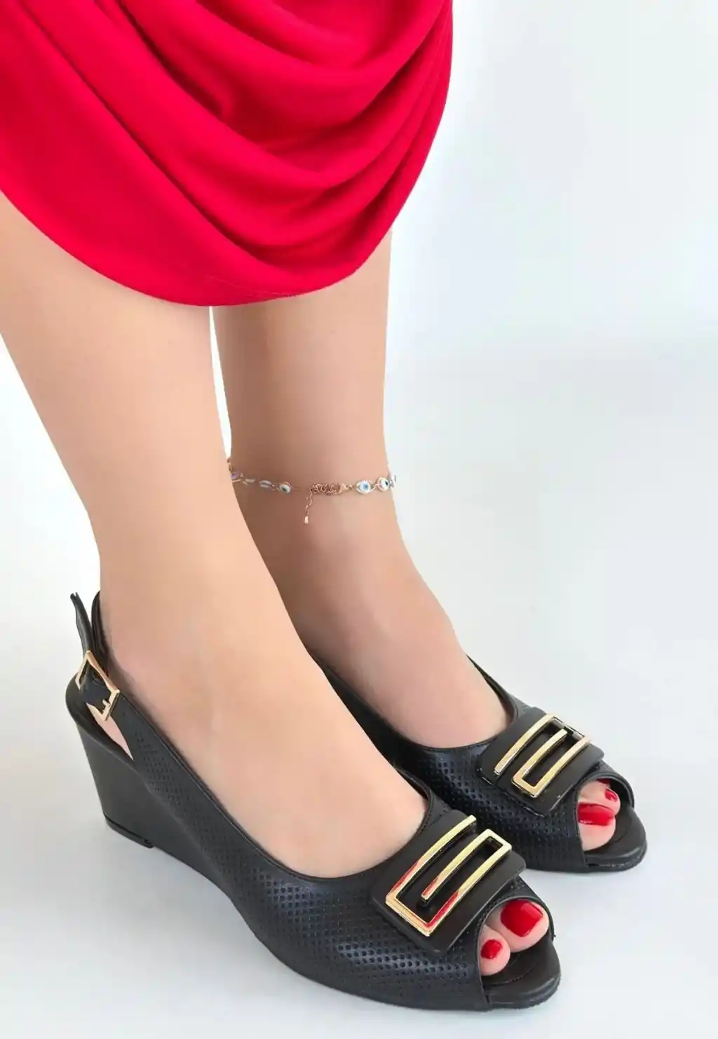 Mamba Siyah Cilt Dolgu Topuk Ayakkabı