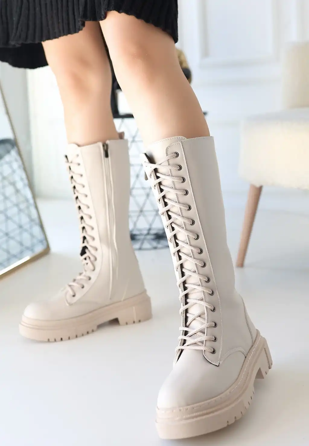 • MENND BEJ CİLT BAĞCIKLI ÇİZME