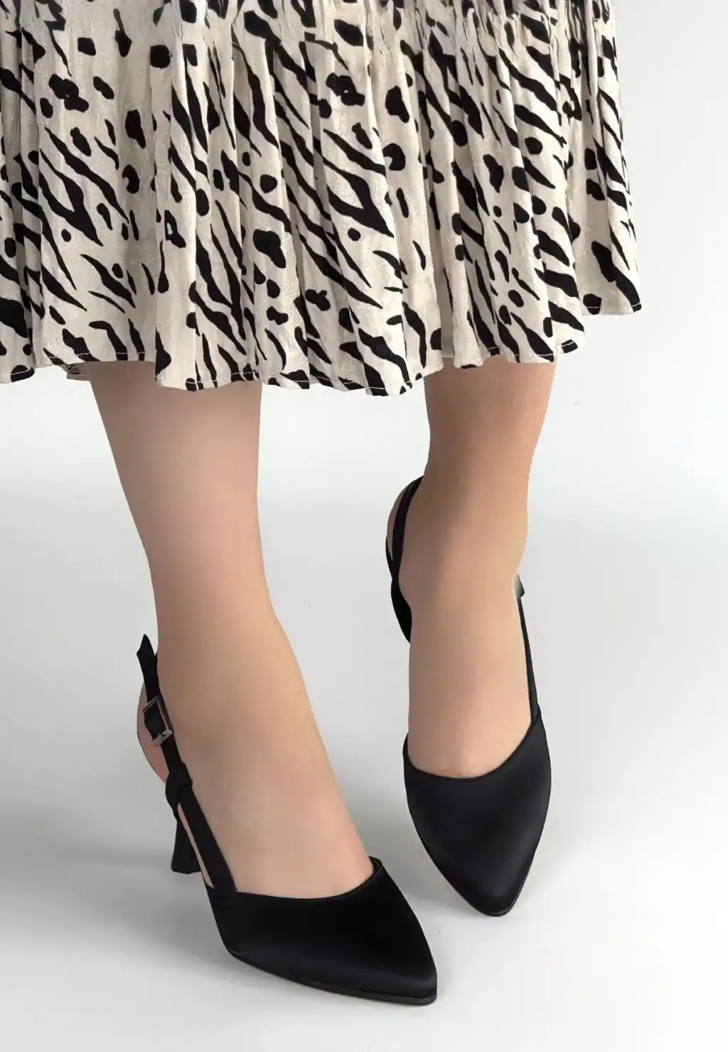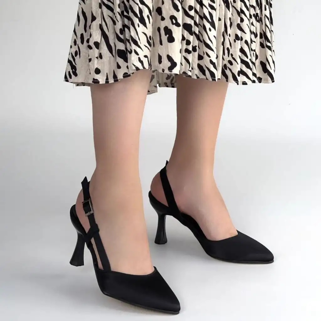 • MİNDE SİYAH SATEN TOPUKLU AYAKKABI