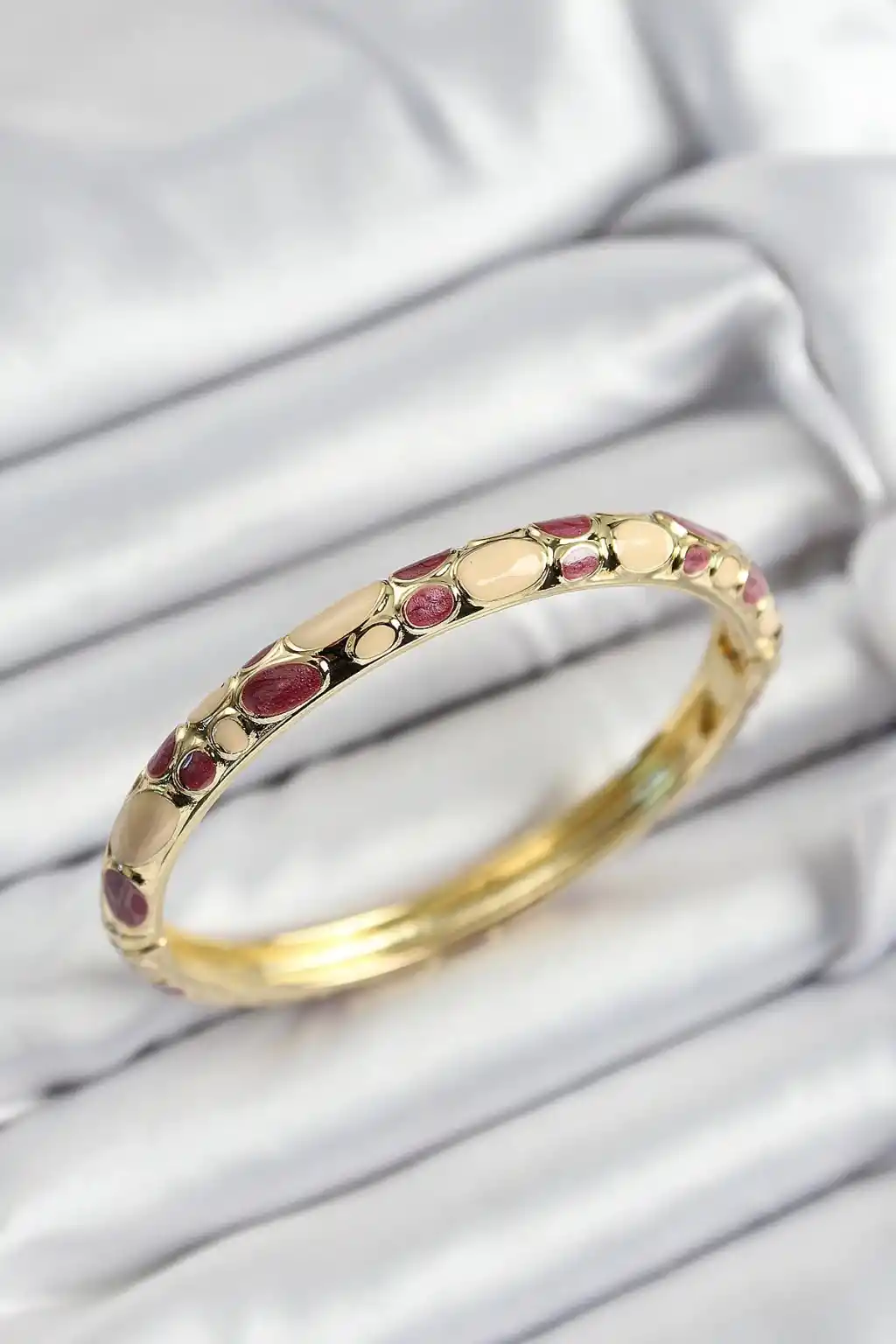 Mineli Pirinç Fuşya Ve Krem Petek Motifli Gold Renk Kadın Kelepçe