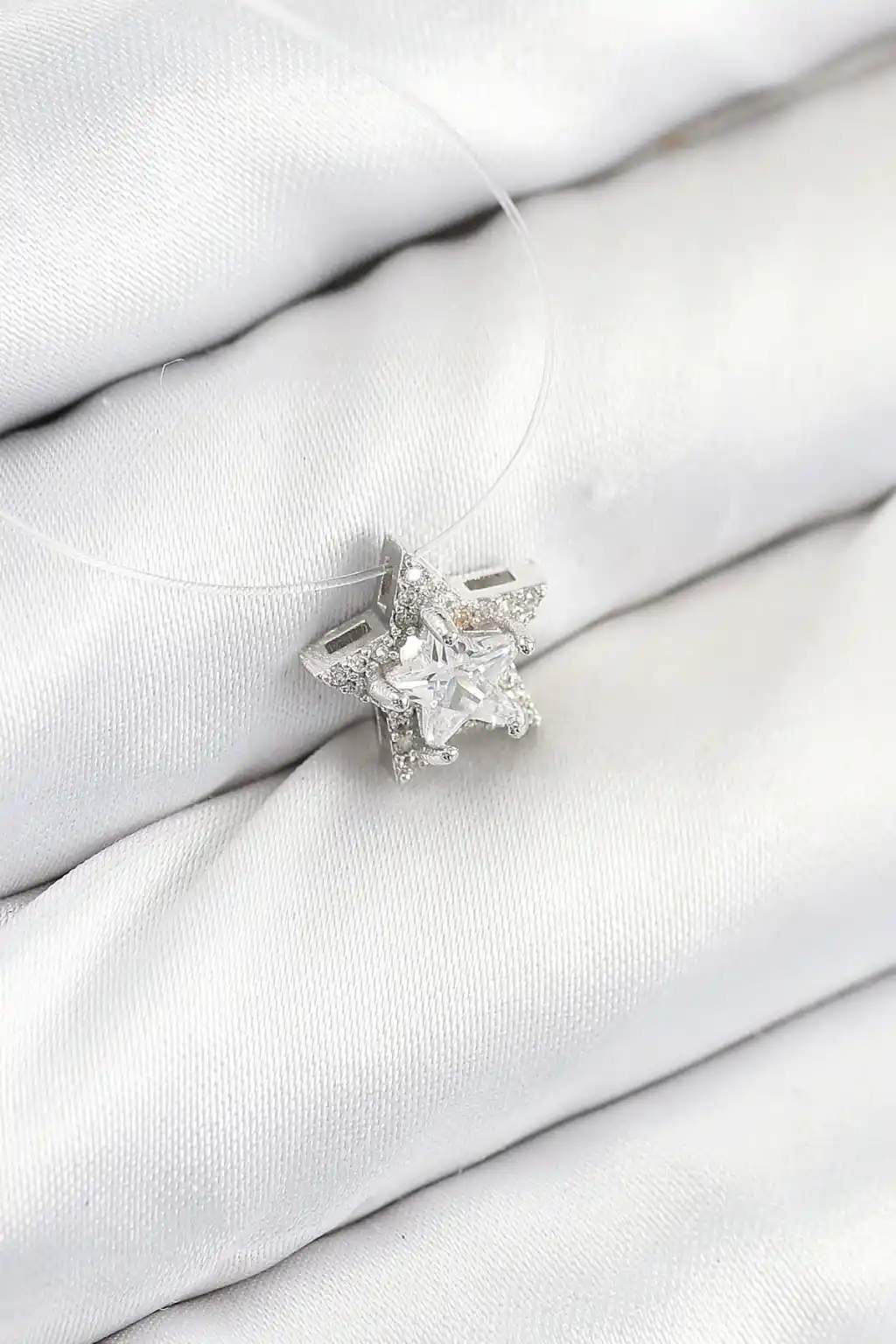 Misineli Yıldız Model Gümüş Renk Hayalet Kolye