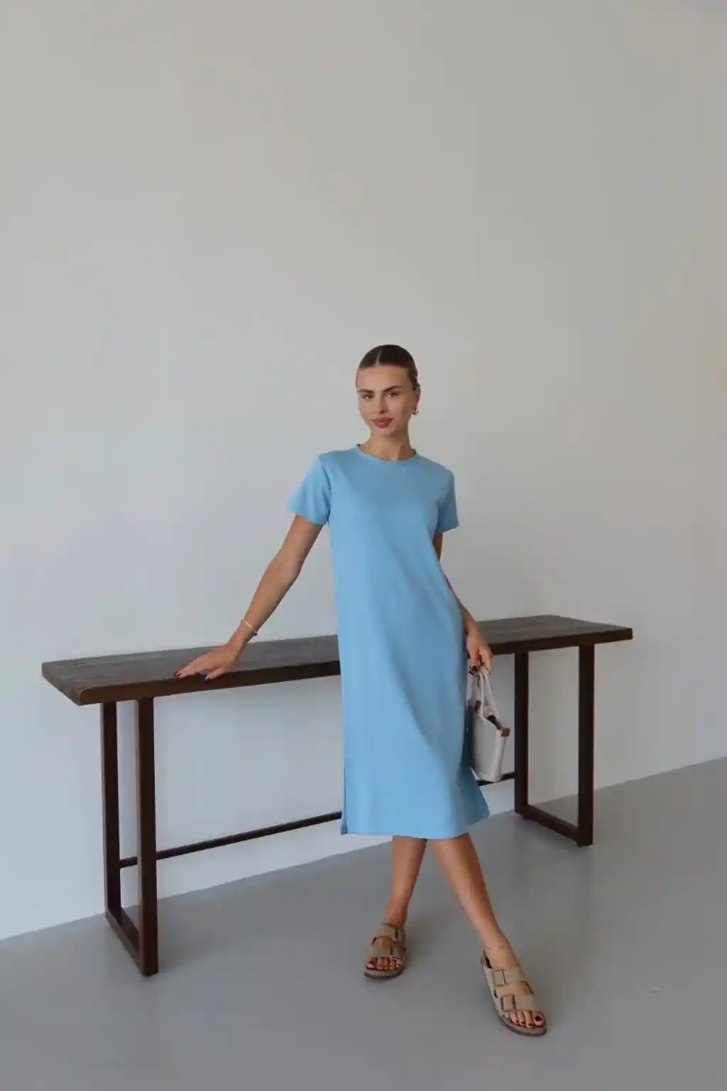 Fermuar detaylı fitilli şardonlu elbise bej a3178