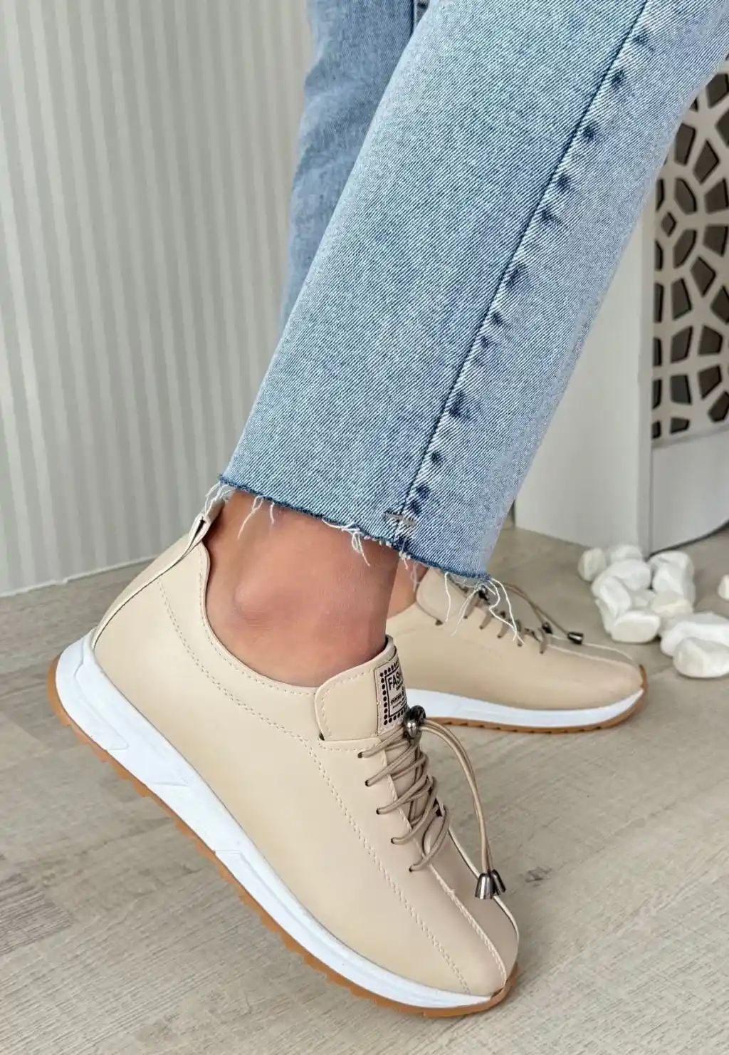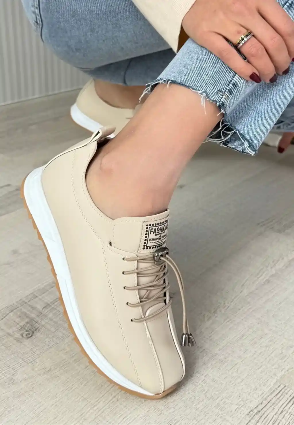 Monya Bej Cilt Bağcıklı Spor Ayakkabı