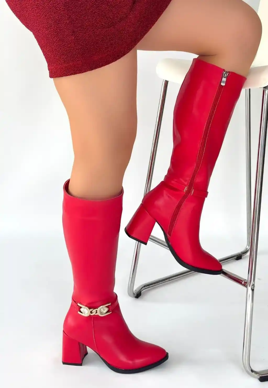 Detay : Topuklu Yandan Fermuarlı Diz Altı Çizme