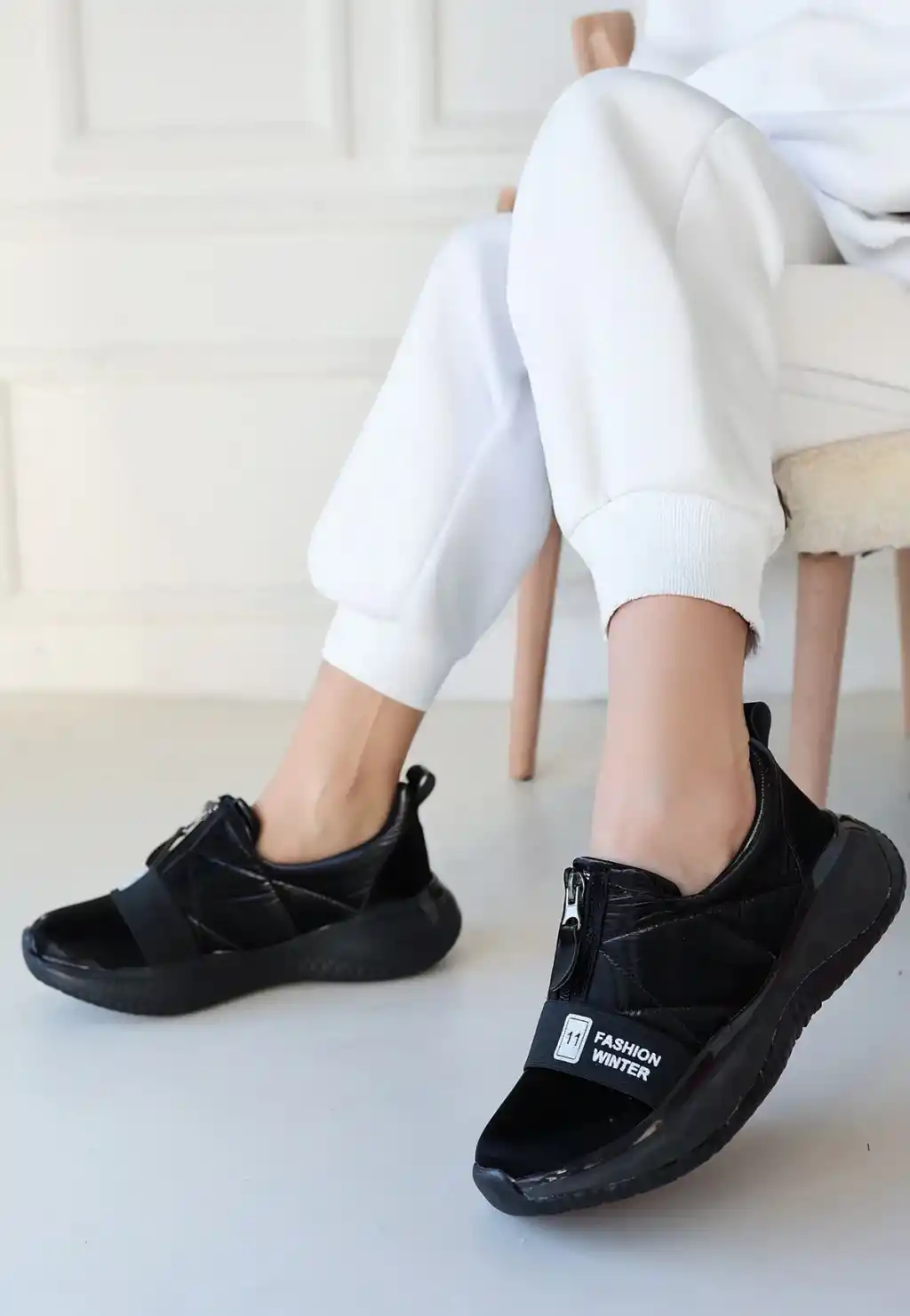 Monya Siyah Cilt Bağcıklı Spor Ayakkabı