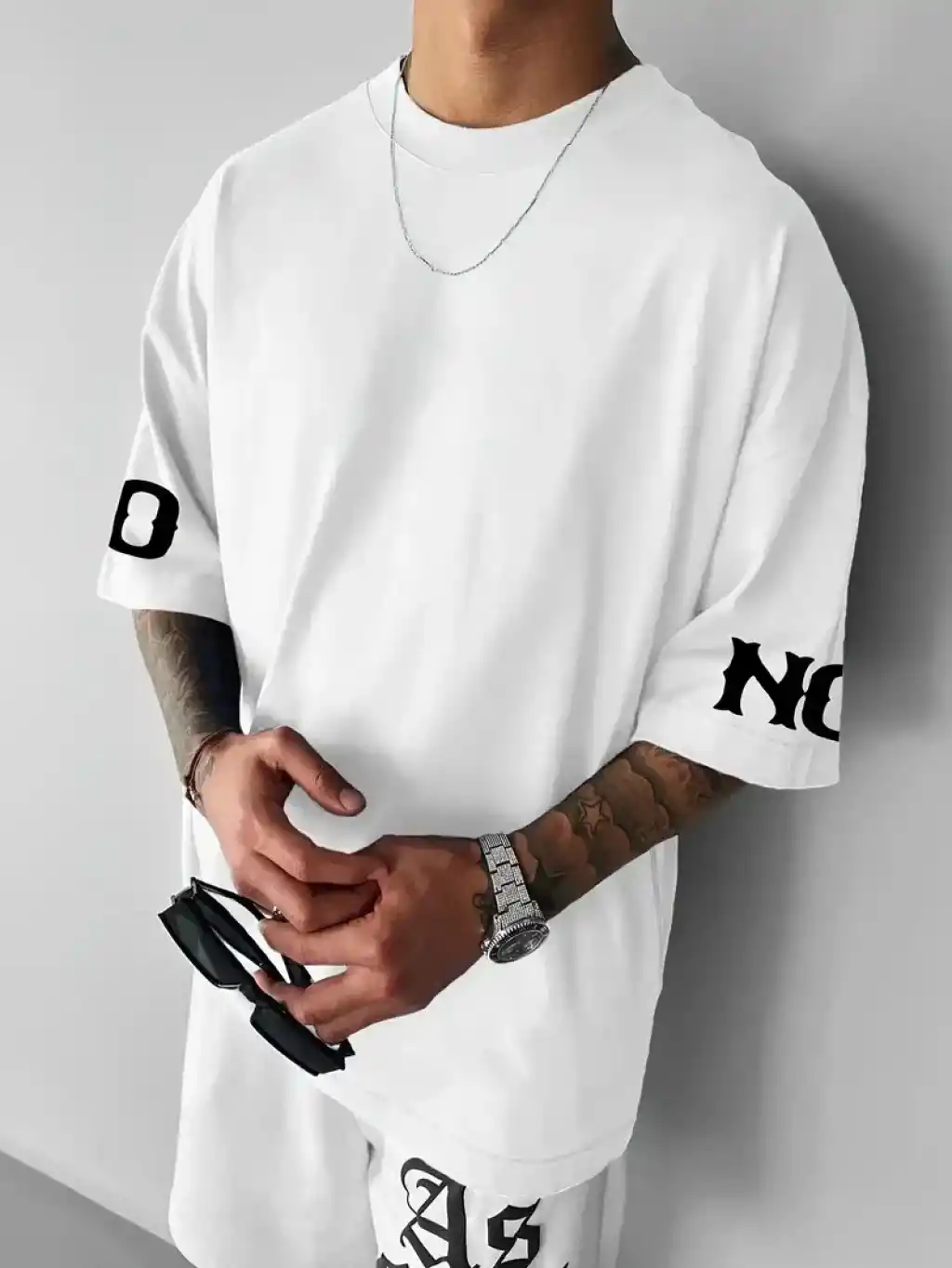 No Risk No Story Baskılı Oversize Bisiklet Yaka T-shirt - Beyaz