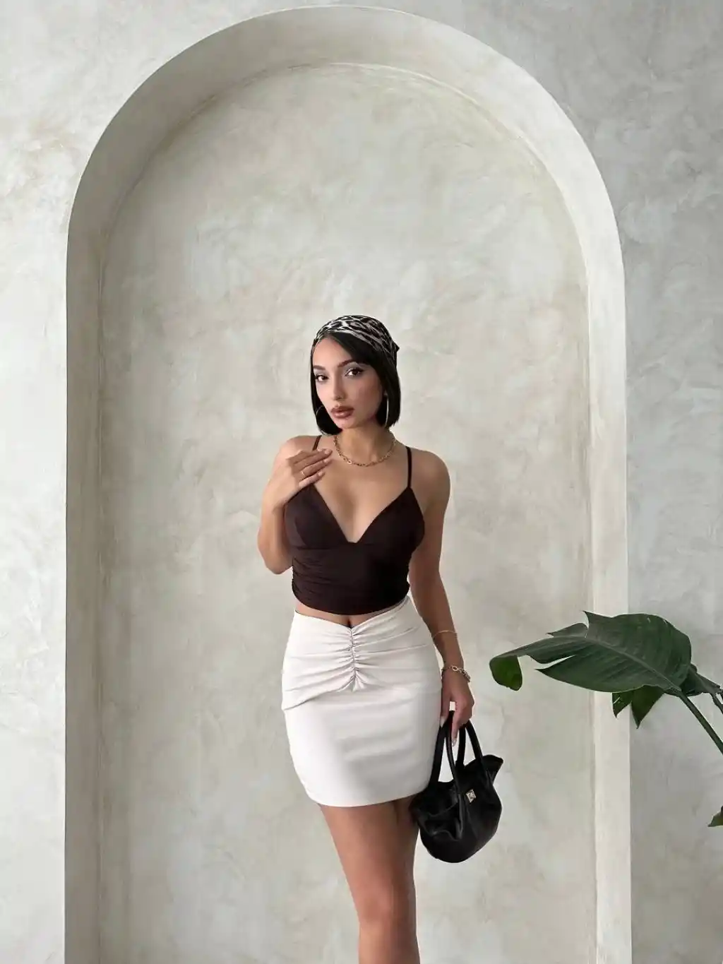 • Şık ve modern tasarımı ile dikkat çeken önü büzgülü etek
