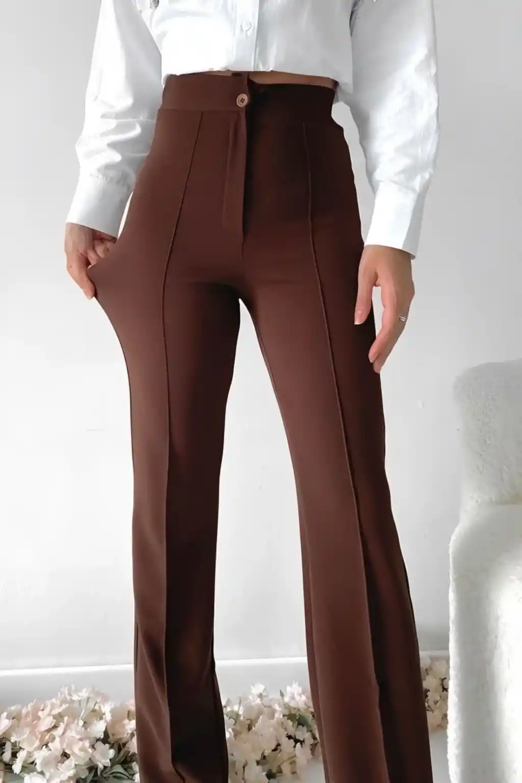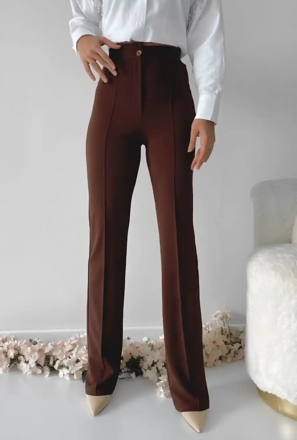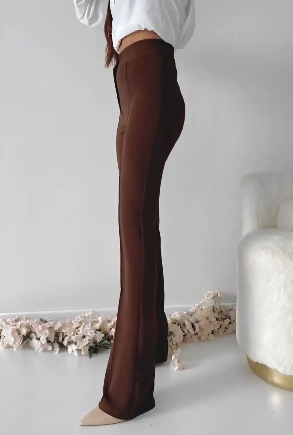 İspanyol yırtmaçlı paça deri pantolon bej hn