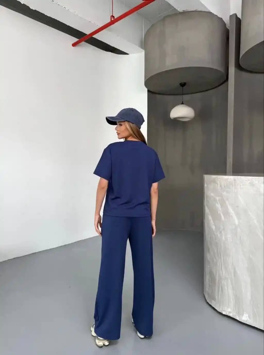Osy Modal Yumuşak Dokulu Kumaş Kısa Kollu Bluz Rahat Pantalon ikili Takım- Lacivert