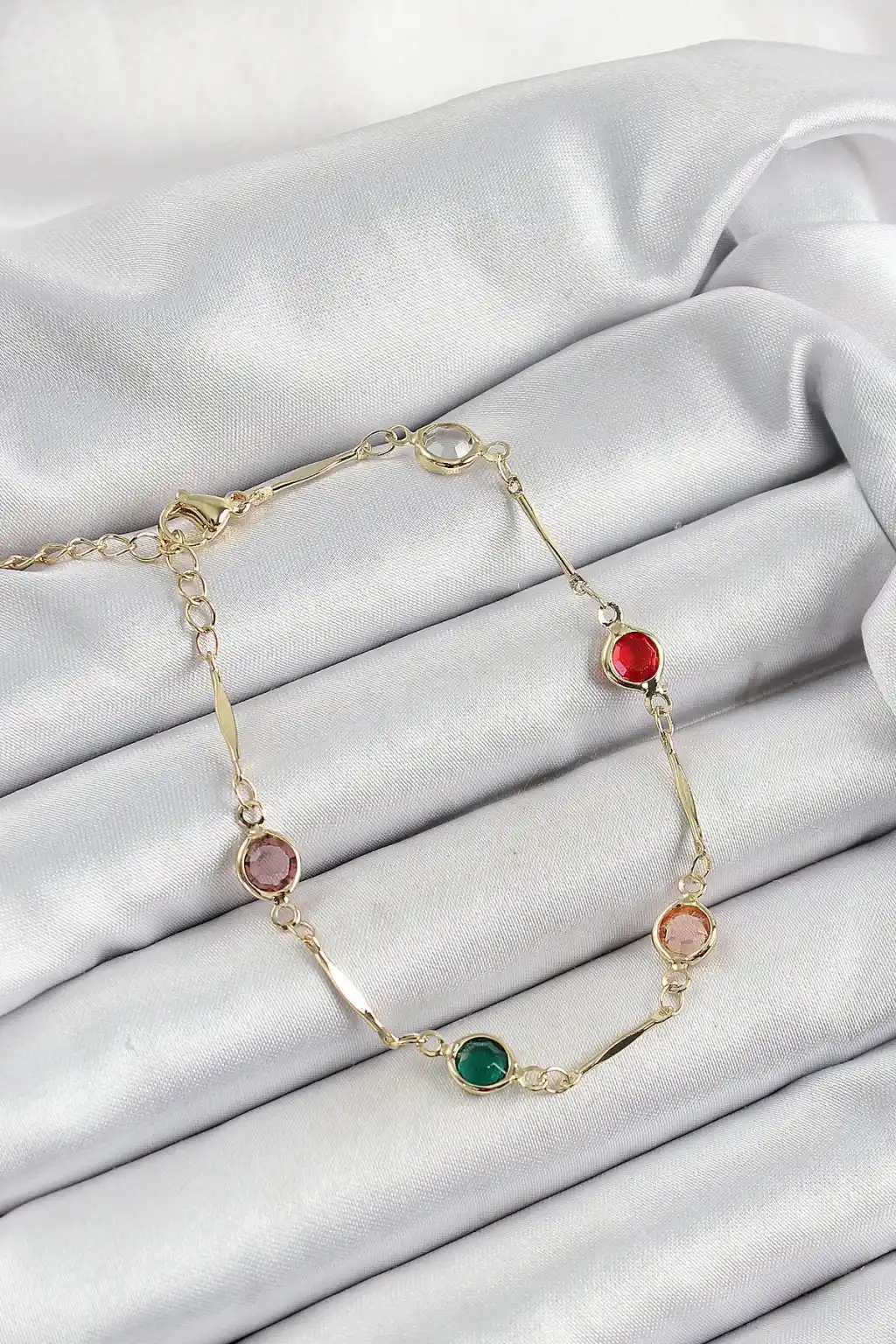 Pirinç Asorti Model Gold Renk Zirkon Taşlı Kadın Bileklik