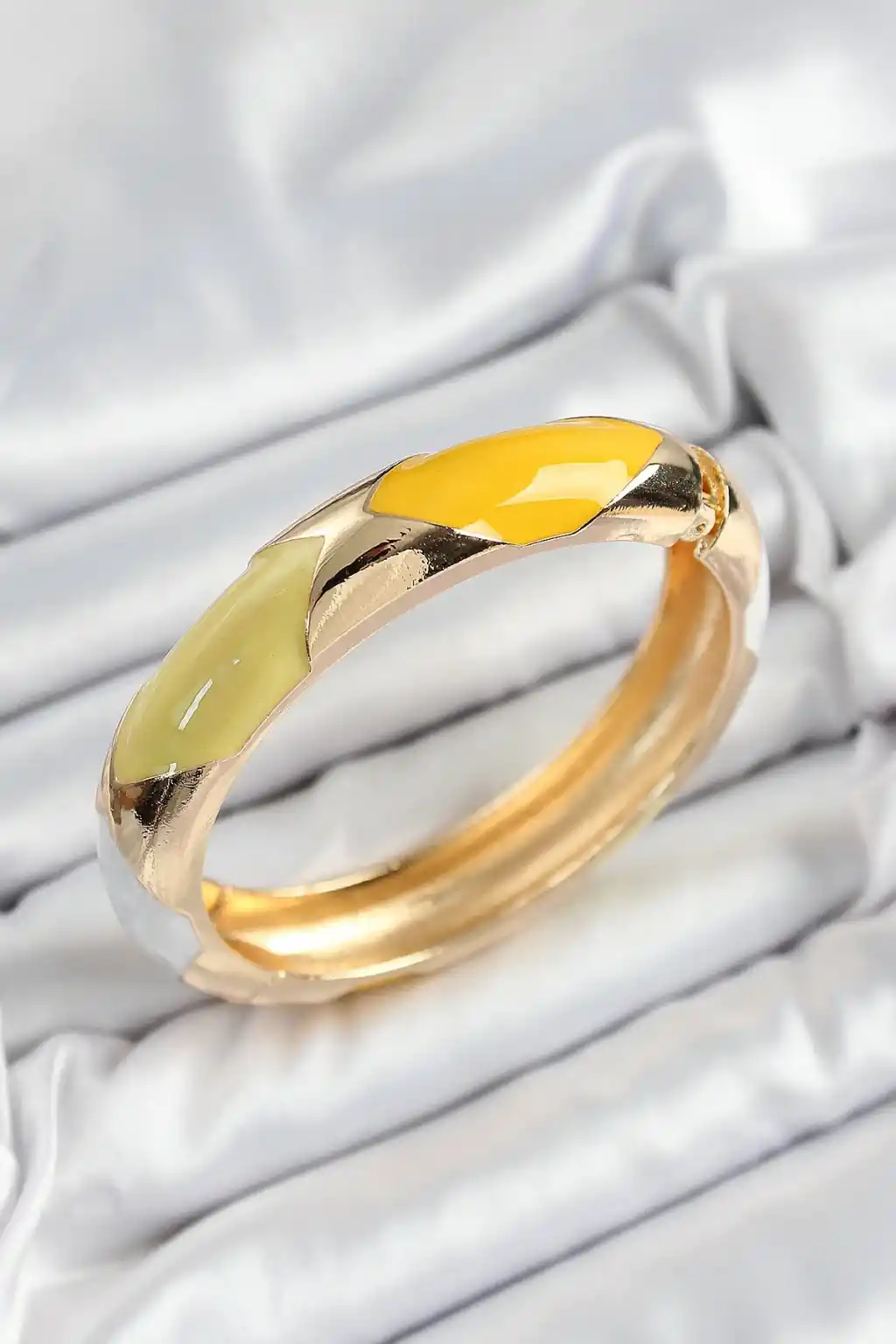 Pirinç Beyaz Yeşil Sarı Mineli Baklava Model Gold Renk Kadın Kelepçe