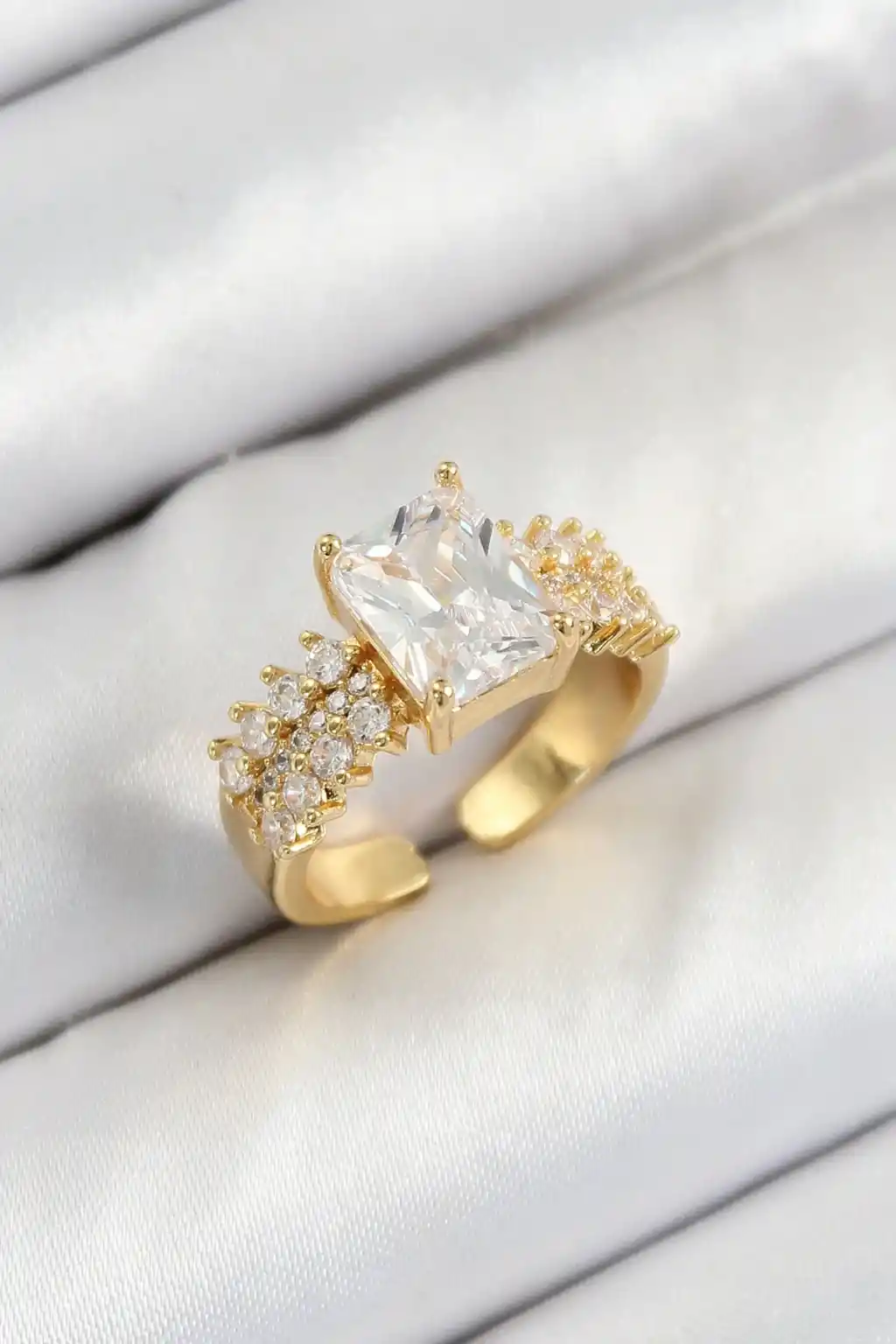 Pirinç Büyük Zirkon Taşlı Model Gold Renk Kadın Yüzük