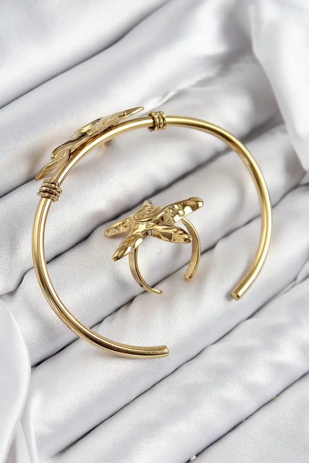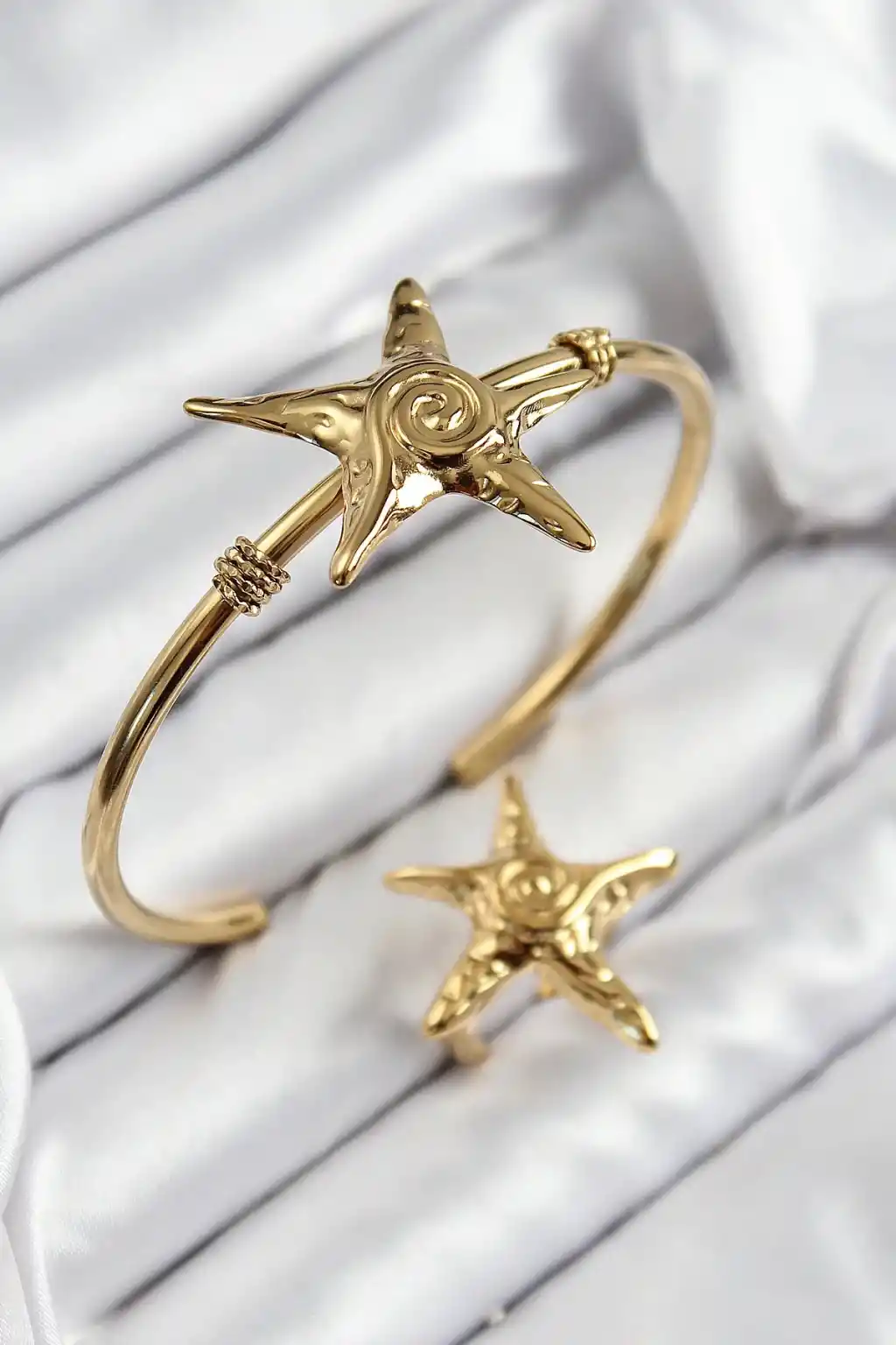 Pirinç Deniz Yıldızı Model Gold Renk Bileklik Yüzük Set