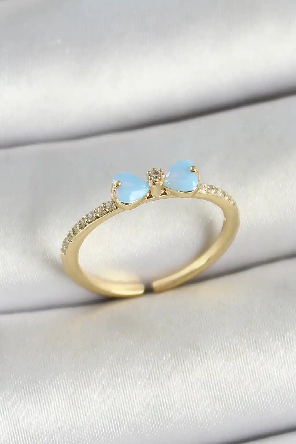 Pirinç Fiyonk Figürlü Zirkon Taşlı Gold Renk Ayarlanabilir Kadın Yüzük