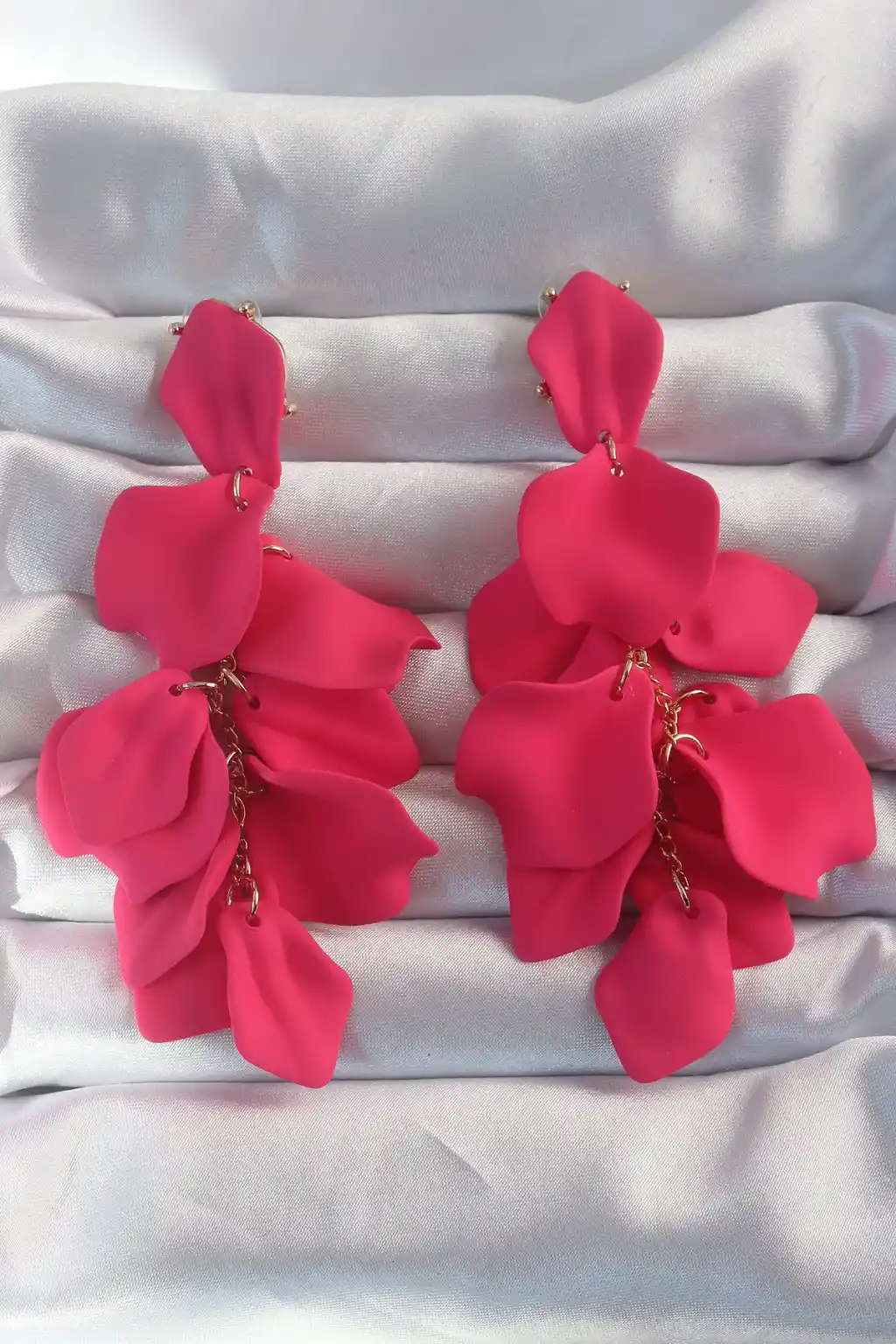 Pirinç Fuşya Renk Sallantılı Yaprak Model Küpe