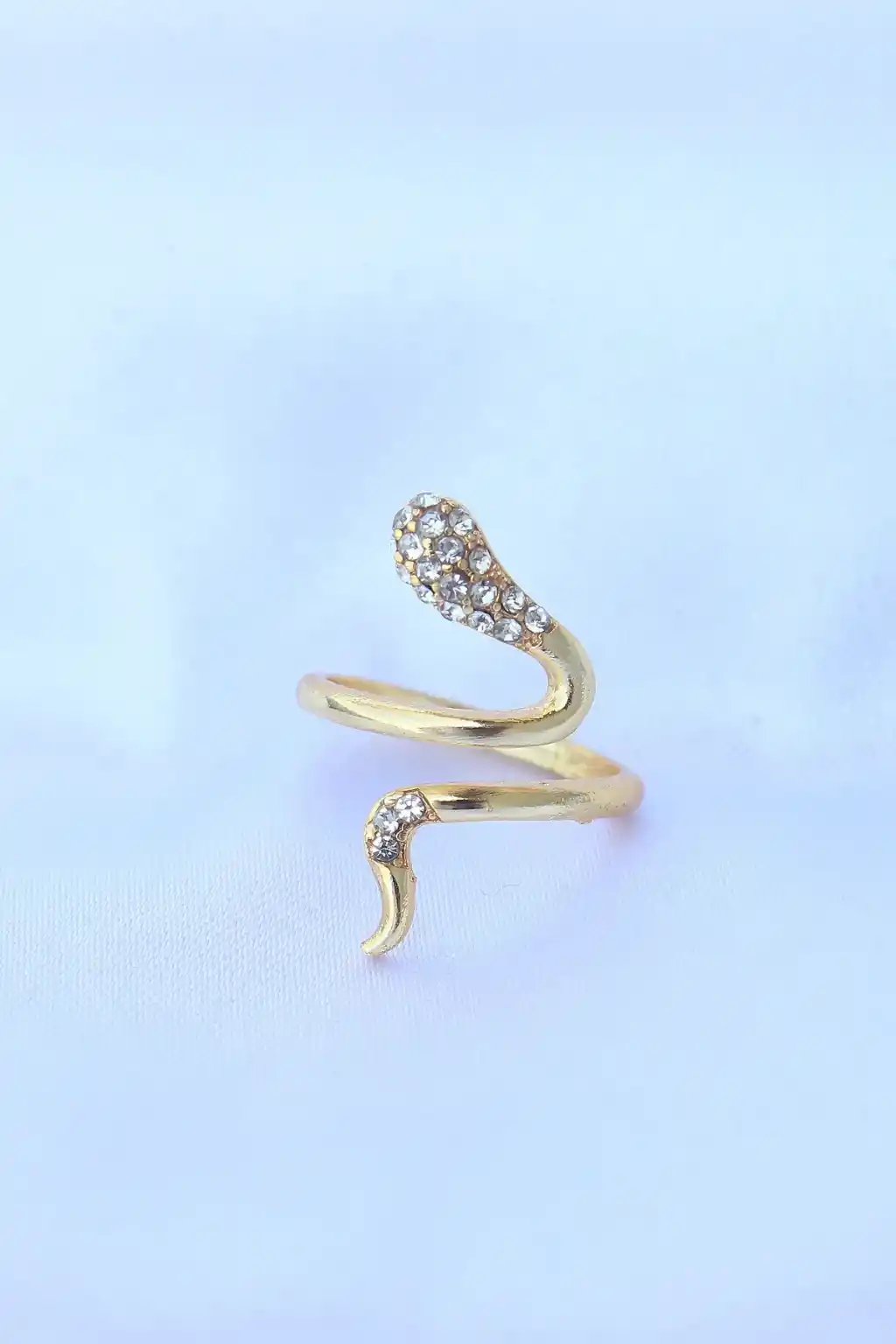 Pirinç Gold Renk Ayarlanabilir Zirkon Taşlı Yılan Yüzük