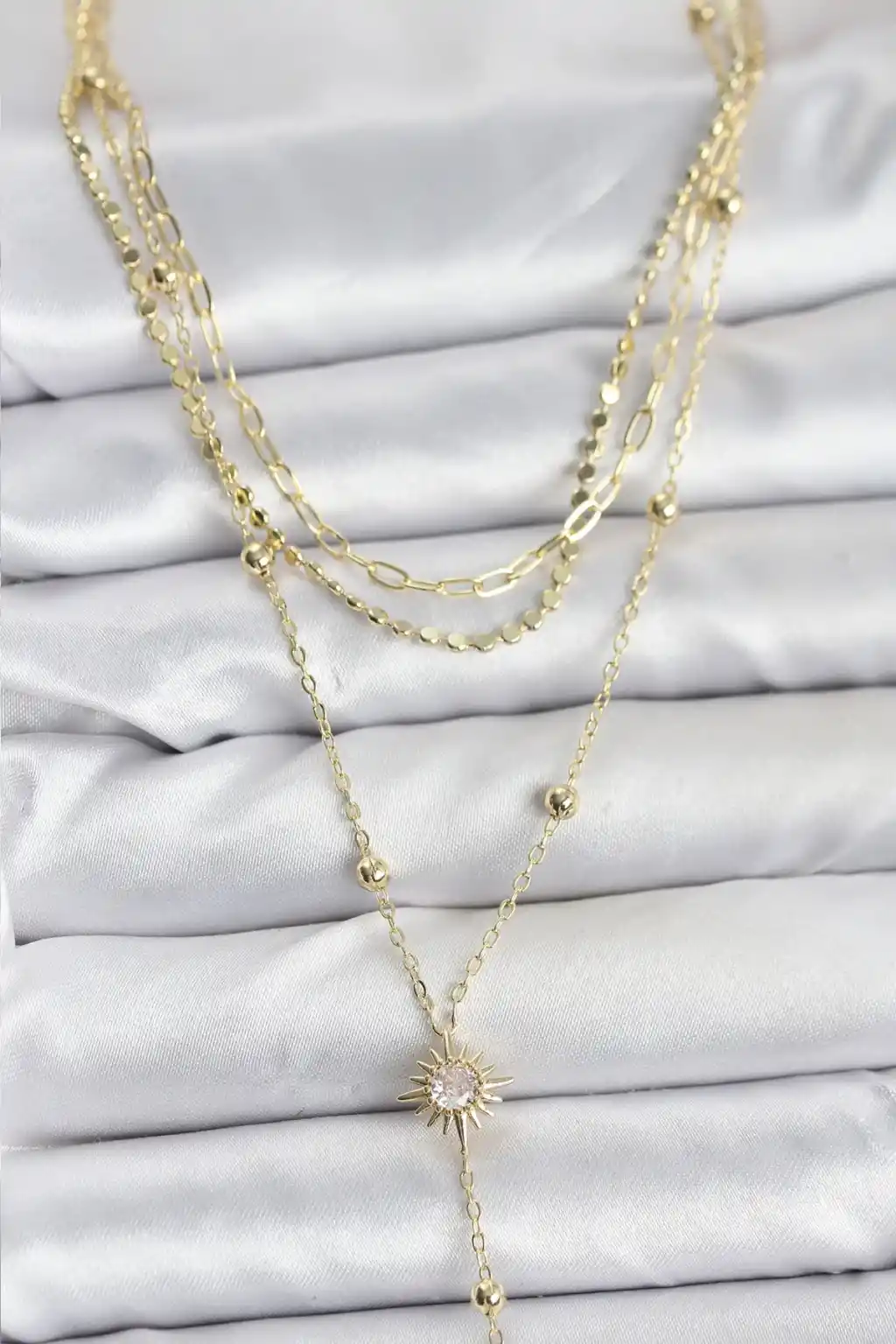 Pirinç Gold Renk Güneş Model Detaylı 3'lü Kombin Y Kadın Kolye