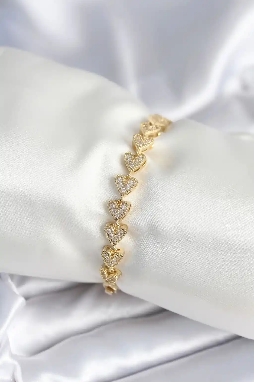 Pirinç Gold Renk Kalp Model Kadın Bileklik
