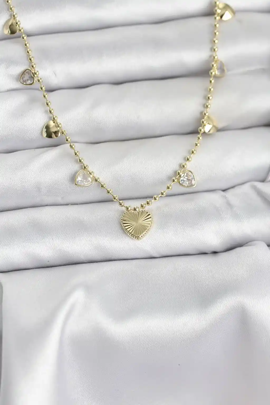 Pirinç Gold Renk Kalp Model Kadın Kolye