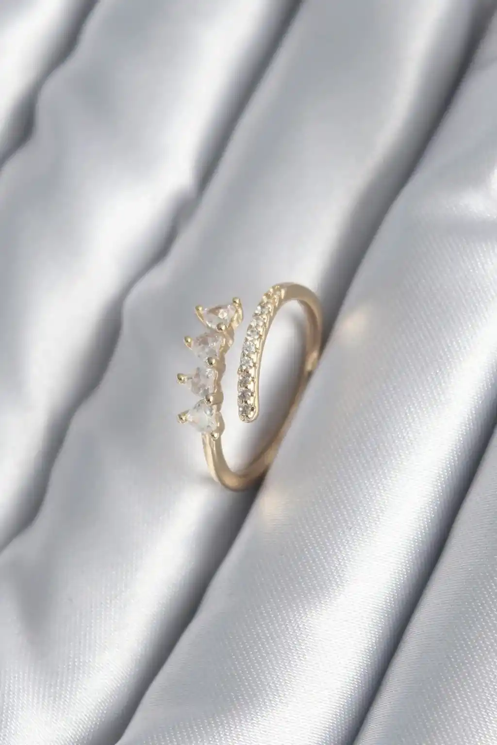 Pirinç Gold Renk Kalp Zirkon Taş Detay Kadın Yüzük