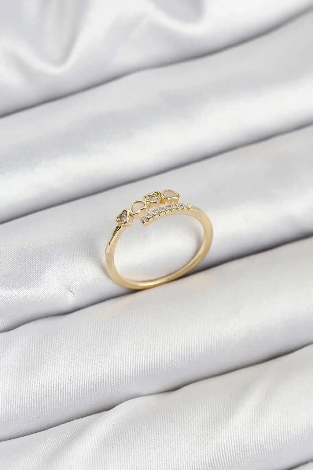 Pirinç Gold Renk Kalpli Detaylı Zirkon Taşlı Kadın Yüzük