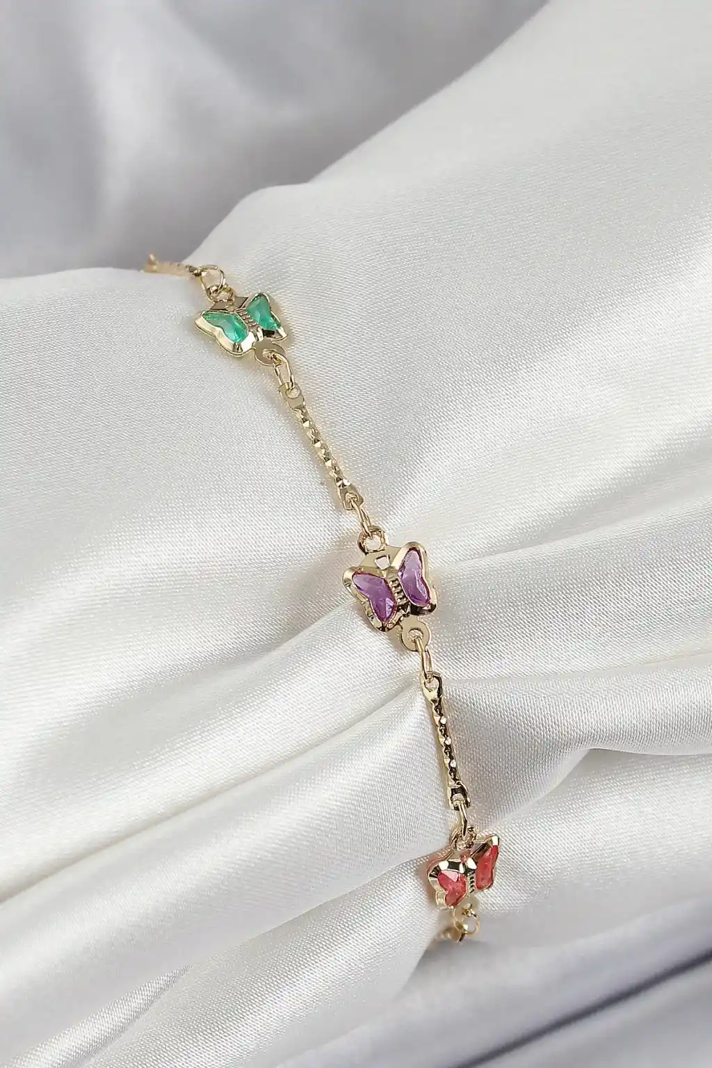 Pirinç Gold Renk Karışık Renk Kelebek Zirkon Taşlı Kadın Bileklik