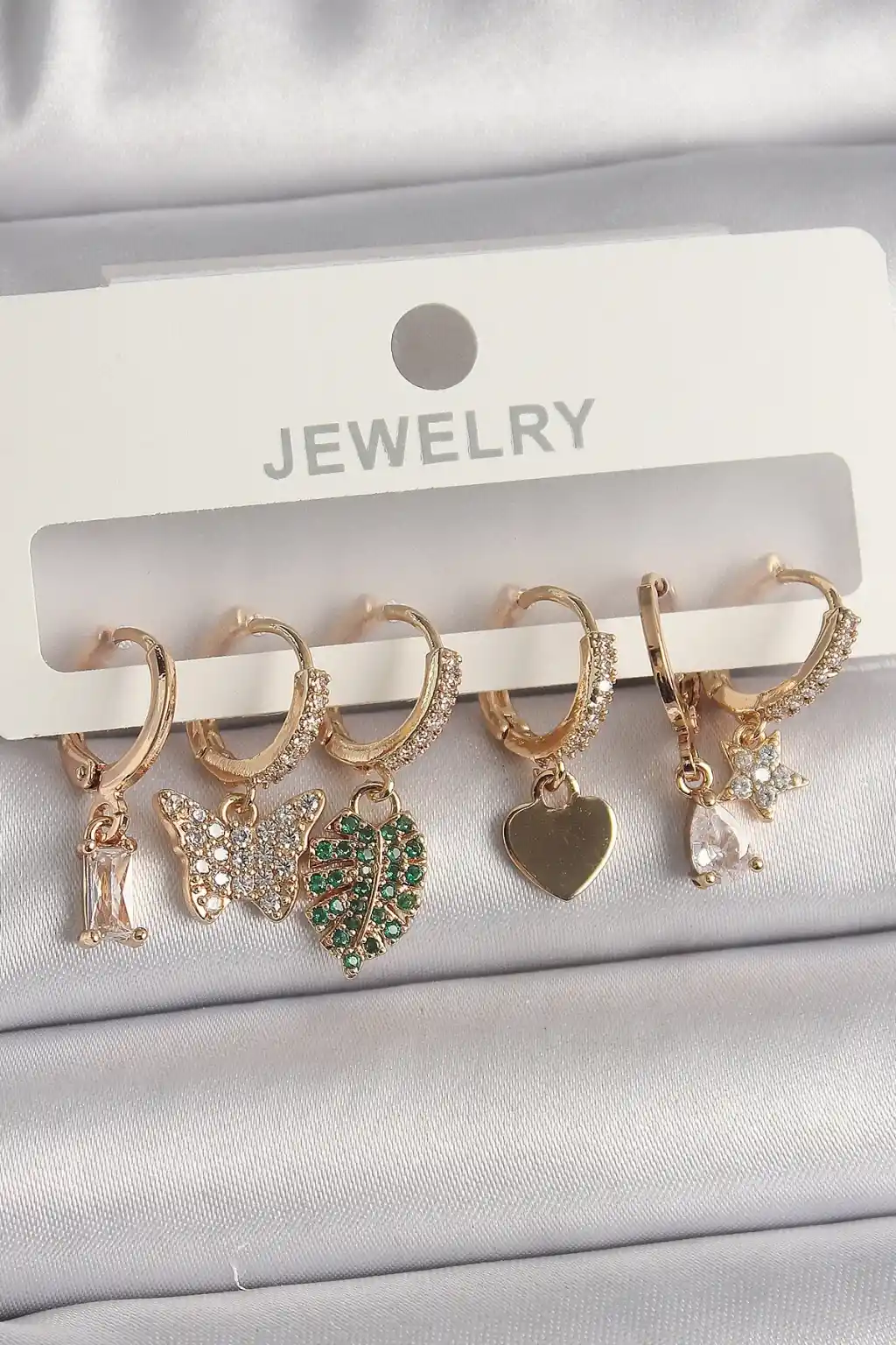 Pirinç Gold Renk Renkli Kelebek Figür Çoklu Figür Kadın Küpe Seti