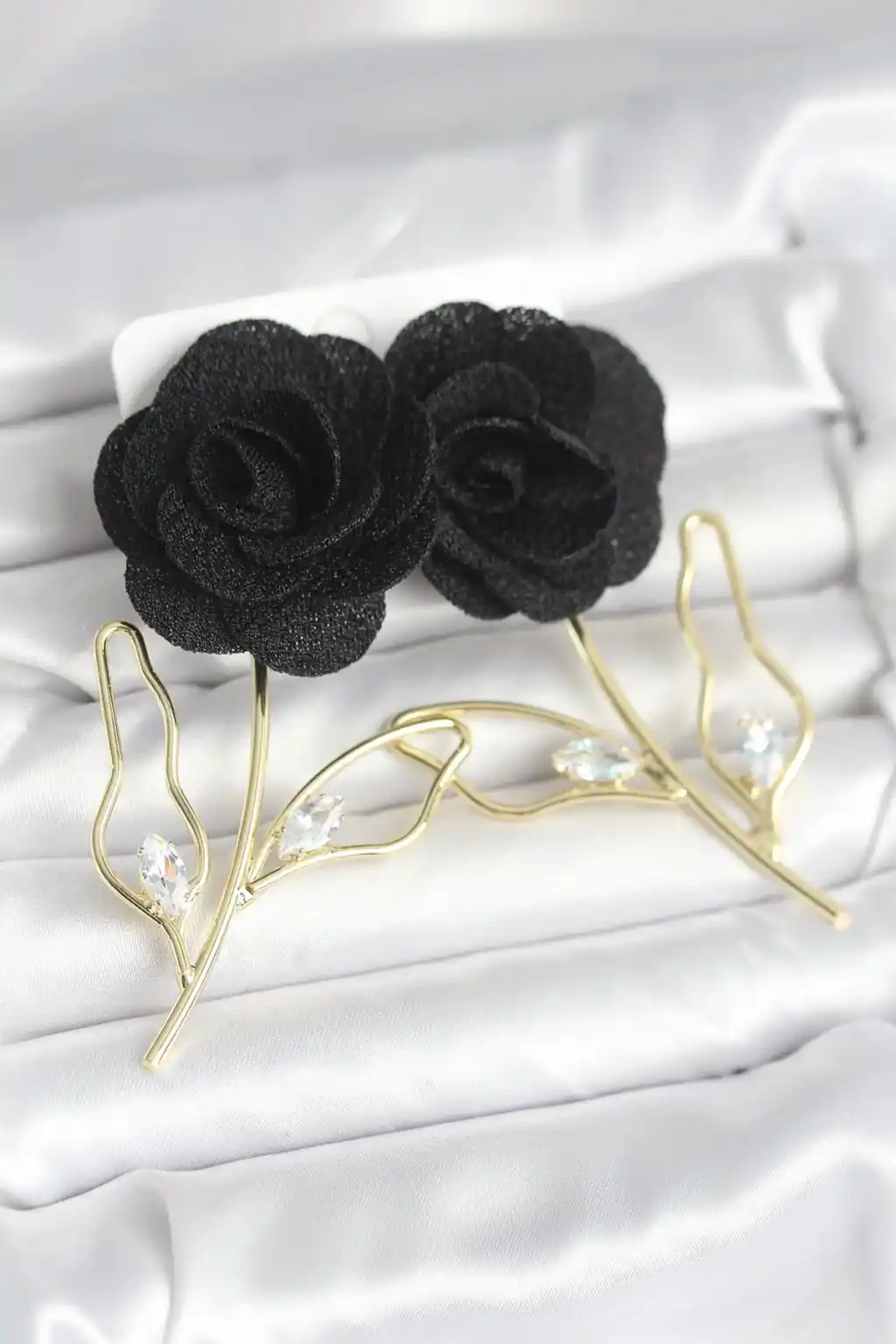 Pirinç Gold Renk Siyah Gül Model Kadın Küpe