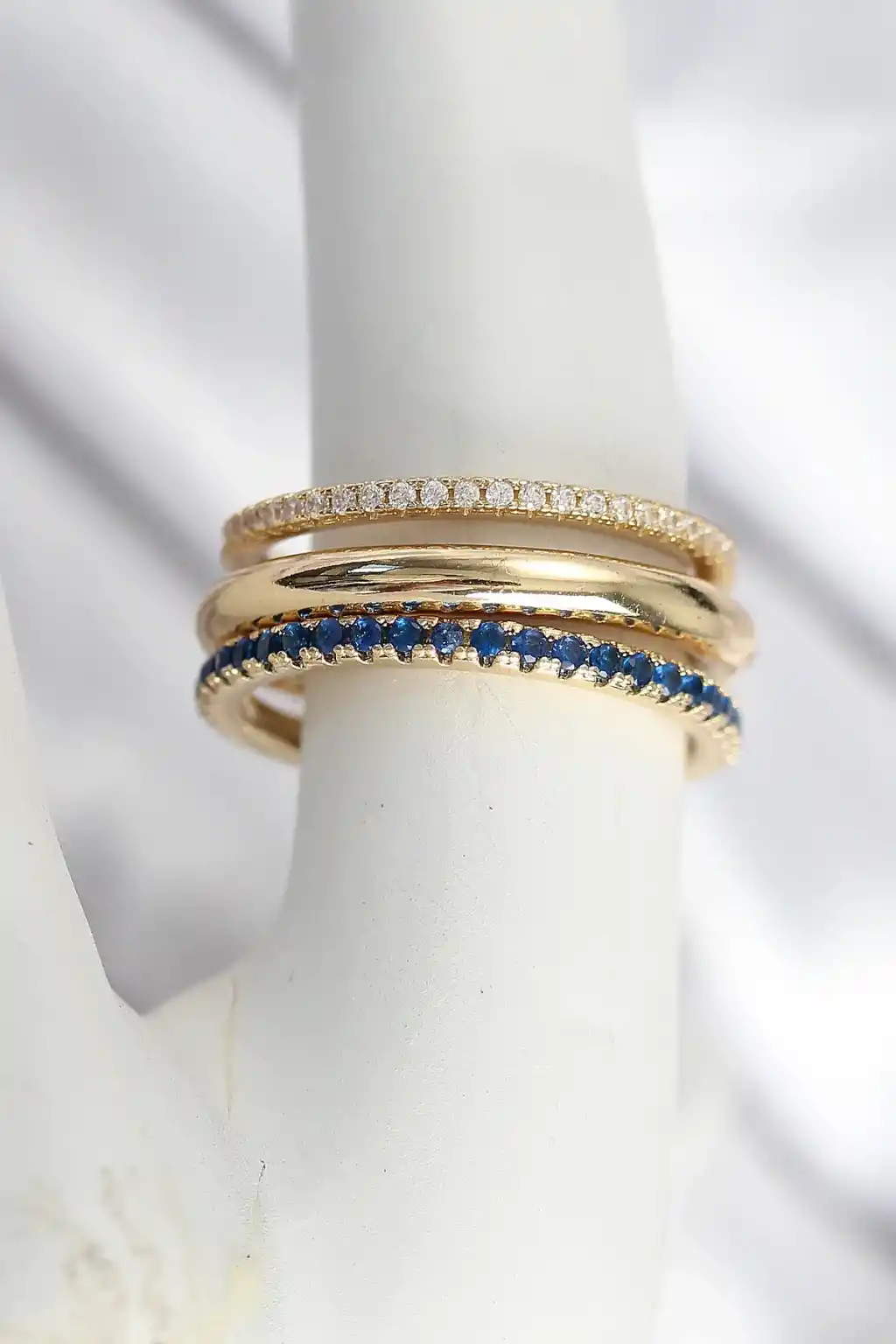 Pirinç Gold Renk Zirkon Taşlı 3'Lü Kadın Yüzük