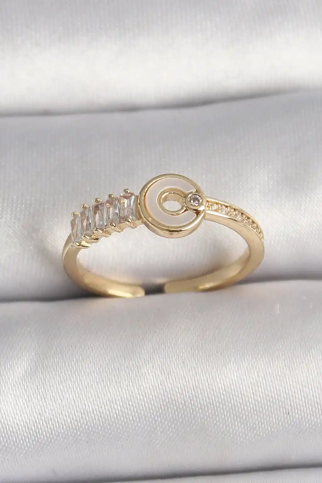 Pirinç Gold Renk Zirkon Taşlı Ayarlanabilir Kadın Yüzük