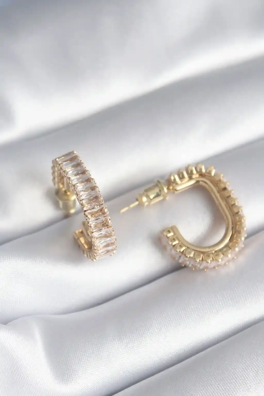 Pirinç Gold Renk Zirkon Taşlı Kadın Küpe