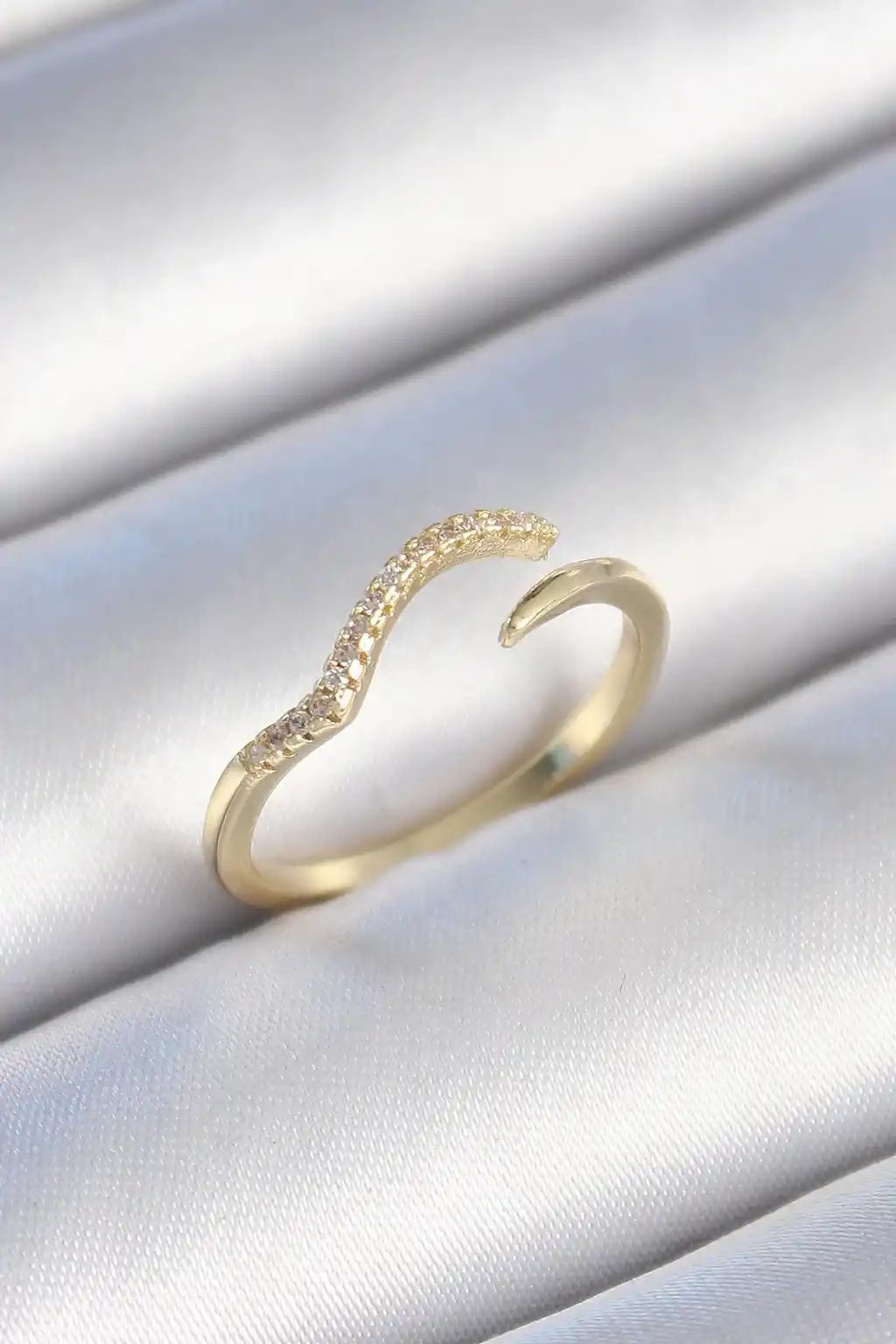 Pirinç Gold Renk Zirkon Taşlı Kadın Yüzük