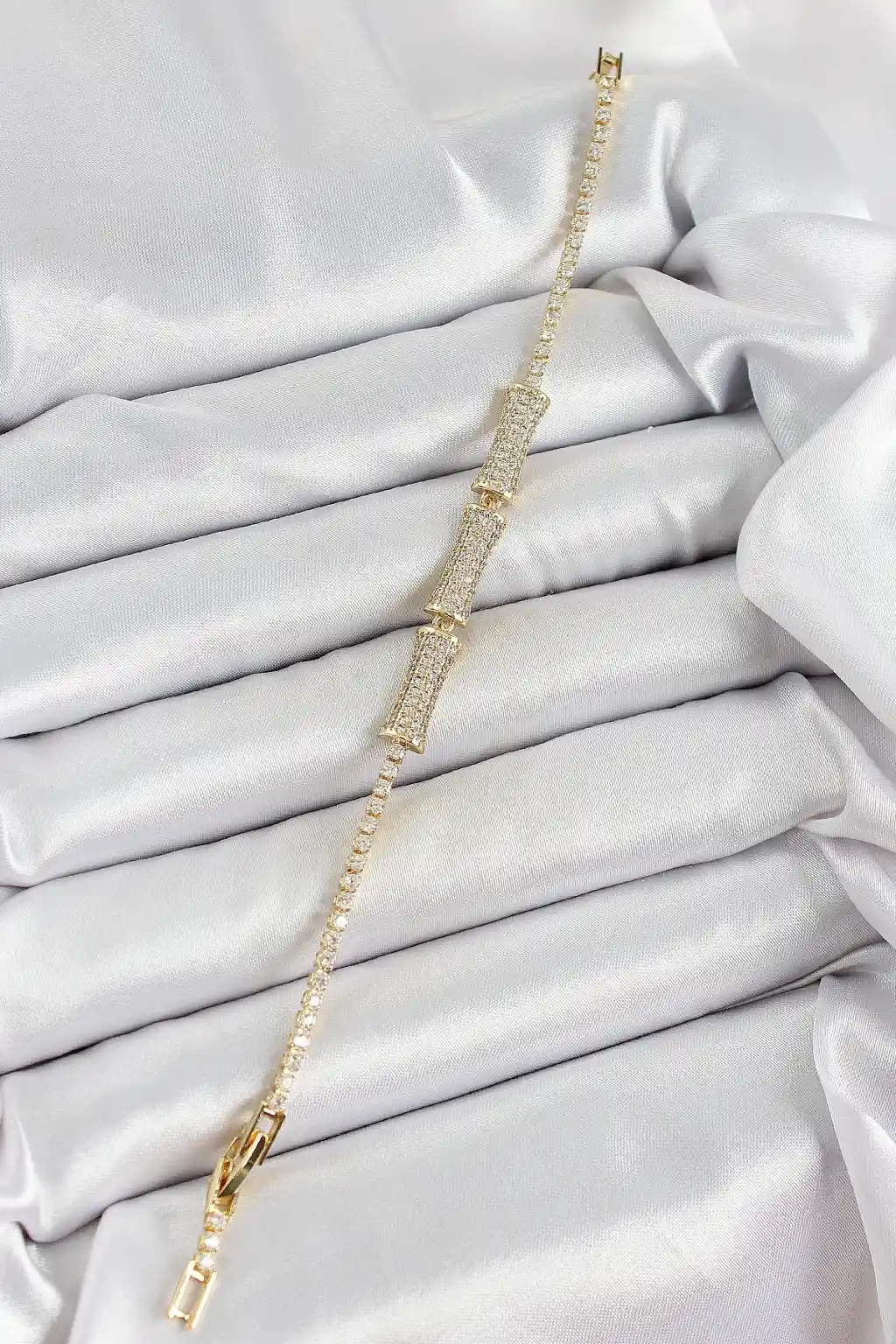 Pirinç Gold Renk Zirkon Taşlı Kemik Model Kadın Bileklik