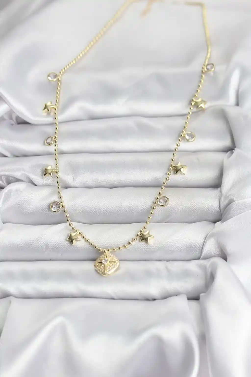 Pirinç Gold Renk Zirkon Taşlı Kutup Yıldızı Model Kadın Kolye
