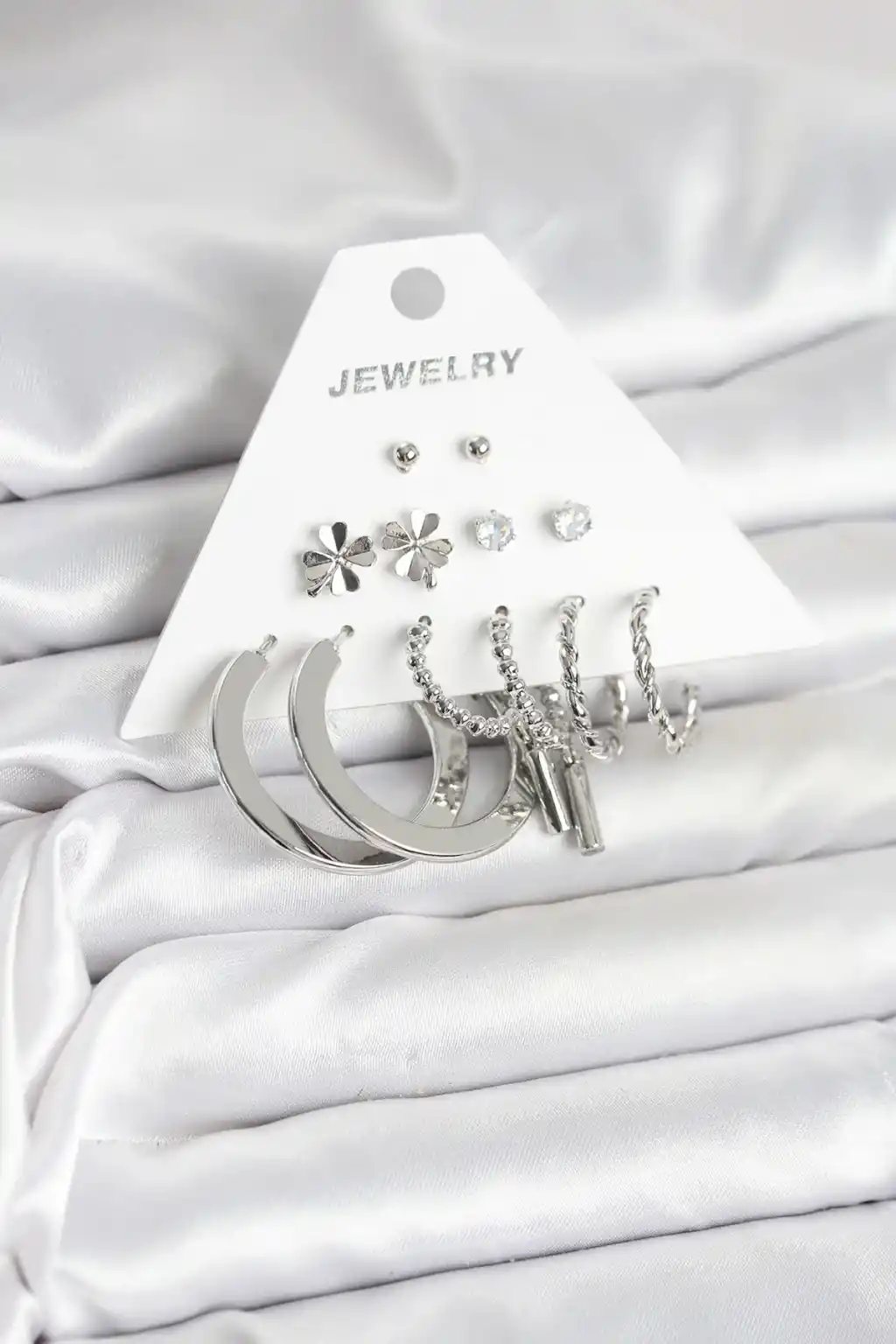 Pirinç Gümüş Renk 6 Çift Kadın Küpe Seti
