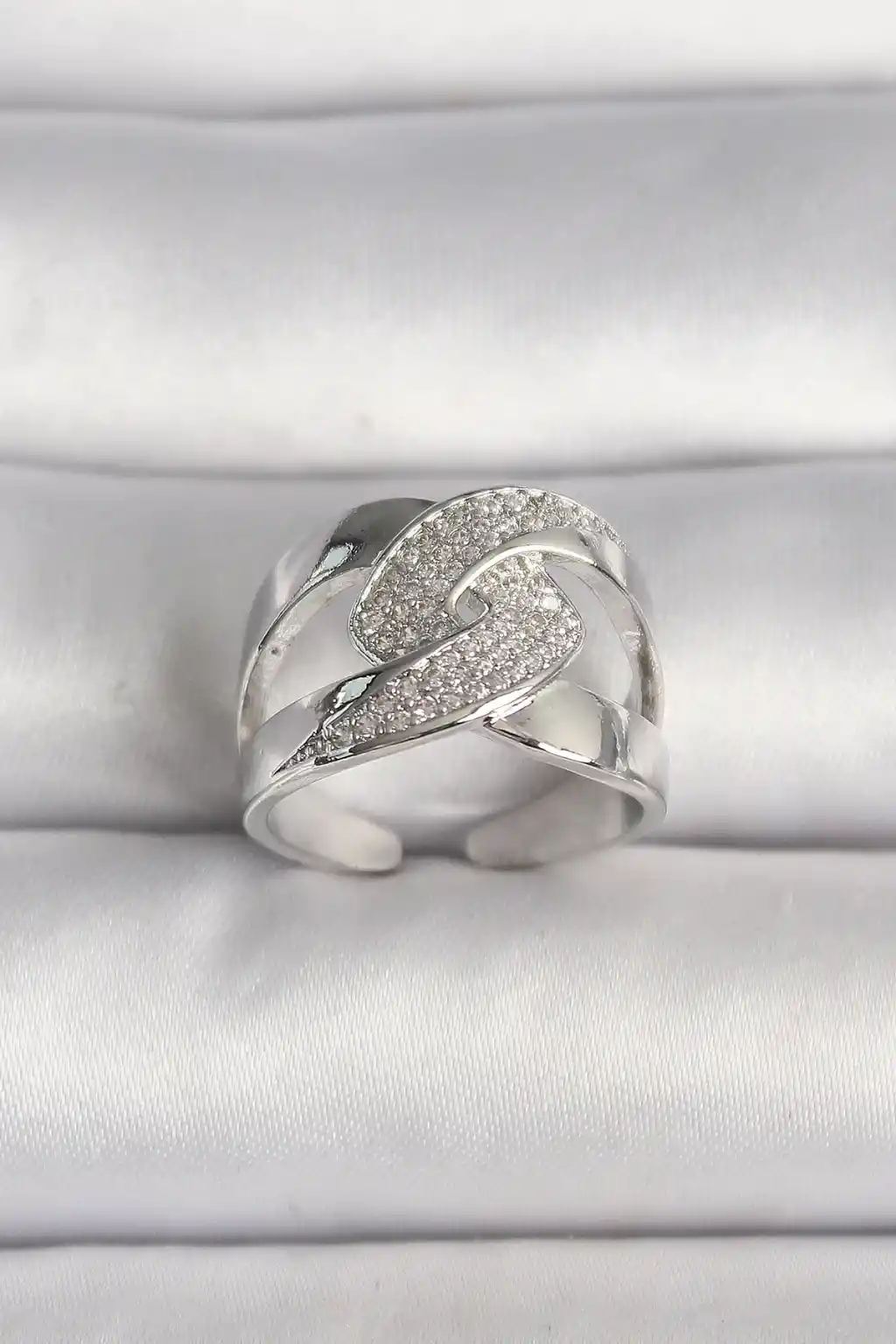 Pirinç Gümüş Renk Ayarlanabilir Zirkon Taşlı Kadın Yüzük