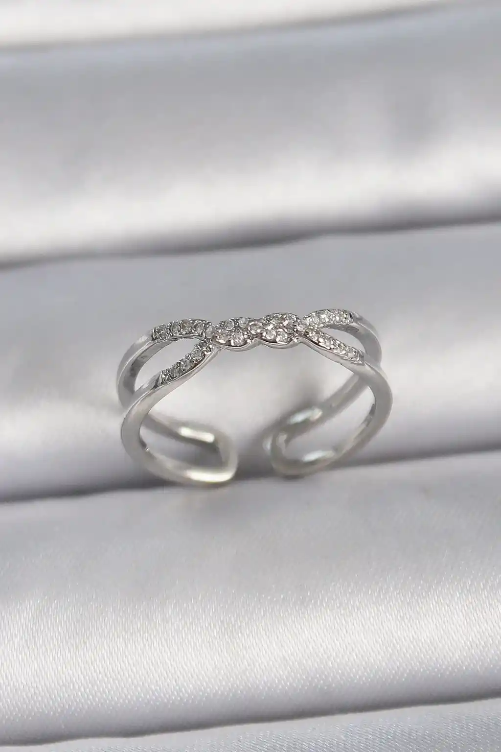 Pirinç Gümüş Renk Ayarlanabilir Zirkon Taşlı Sarmal Model Kadın Yüzük