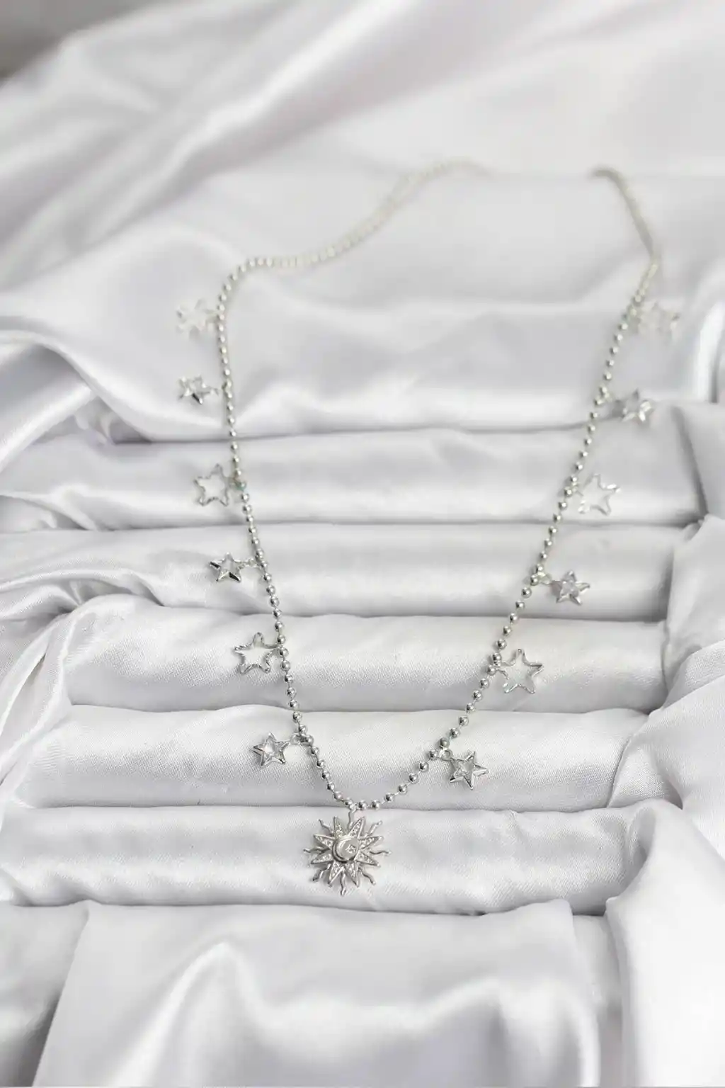 Pirinç Gümüş Renk Güneş Model Kadın Kolye