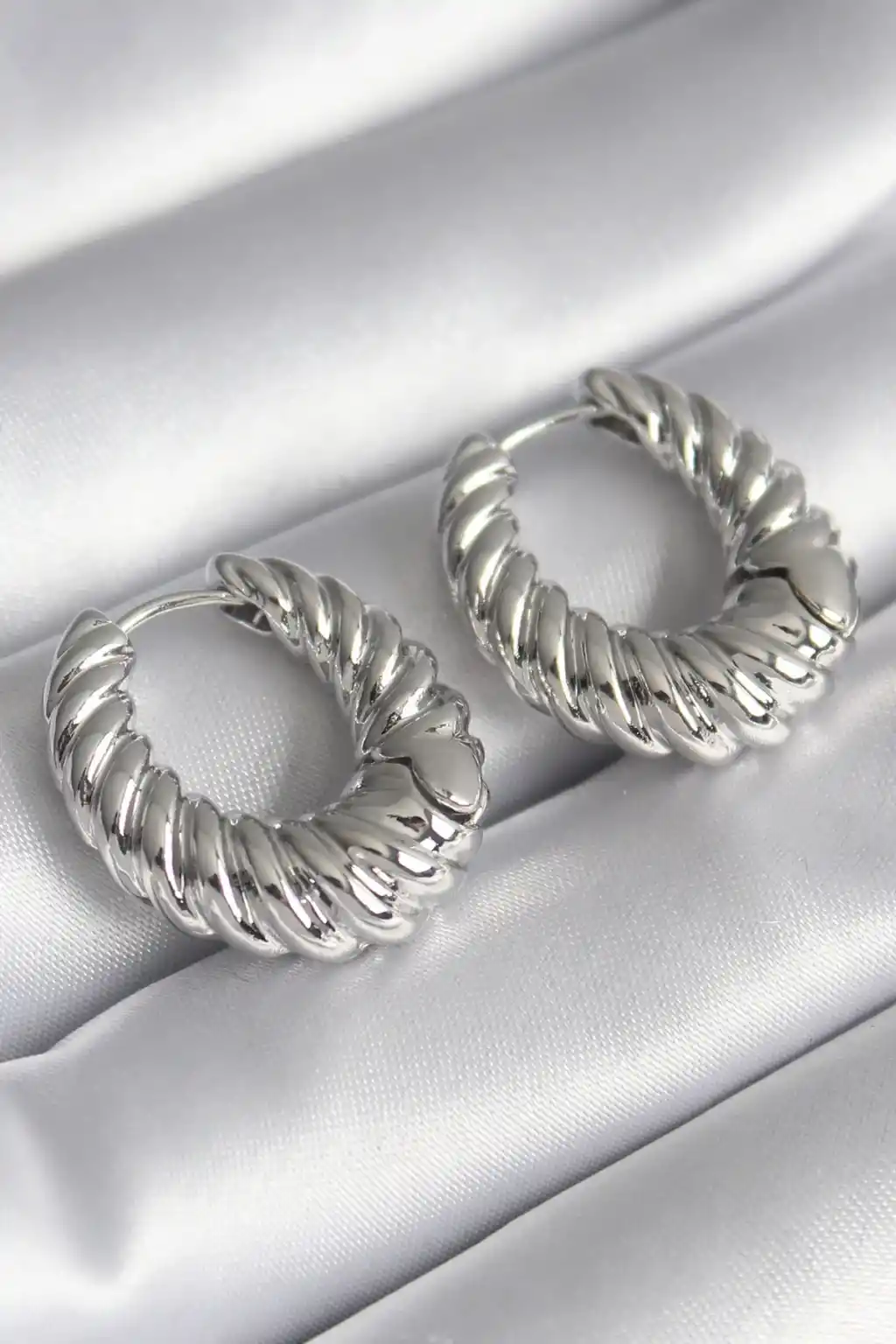 Pirinç Gümüş Renk Halka Sarmal Model Kadın Küpe