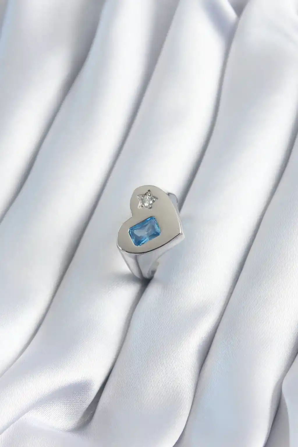 Pirinç Gümüş Renk Kalp Model Yıldız Zirkon Taş Detay Kadın Yüzük