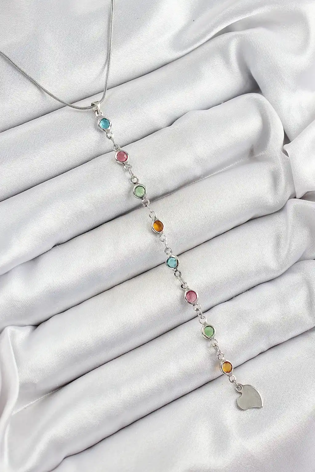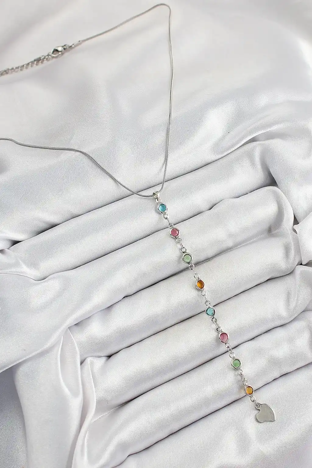 Pirinç Gümüş Renk Karışık Renk Zirkon Taşlı Y Kadın Kolye