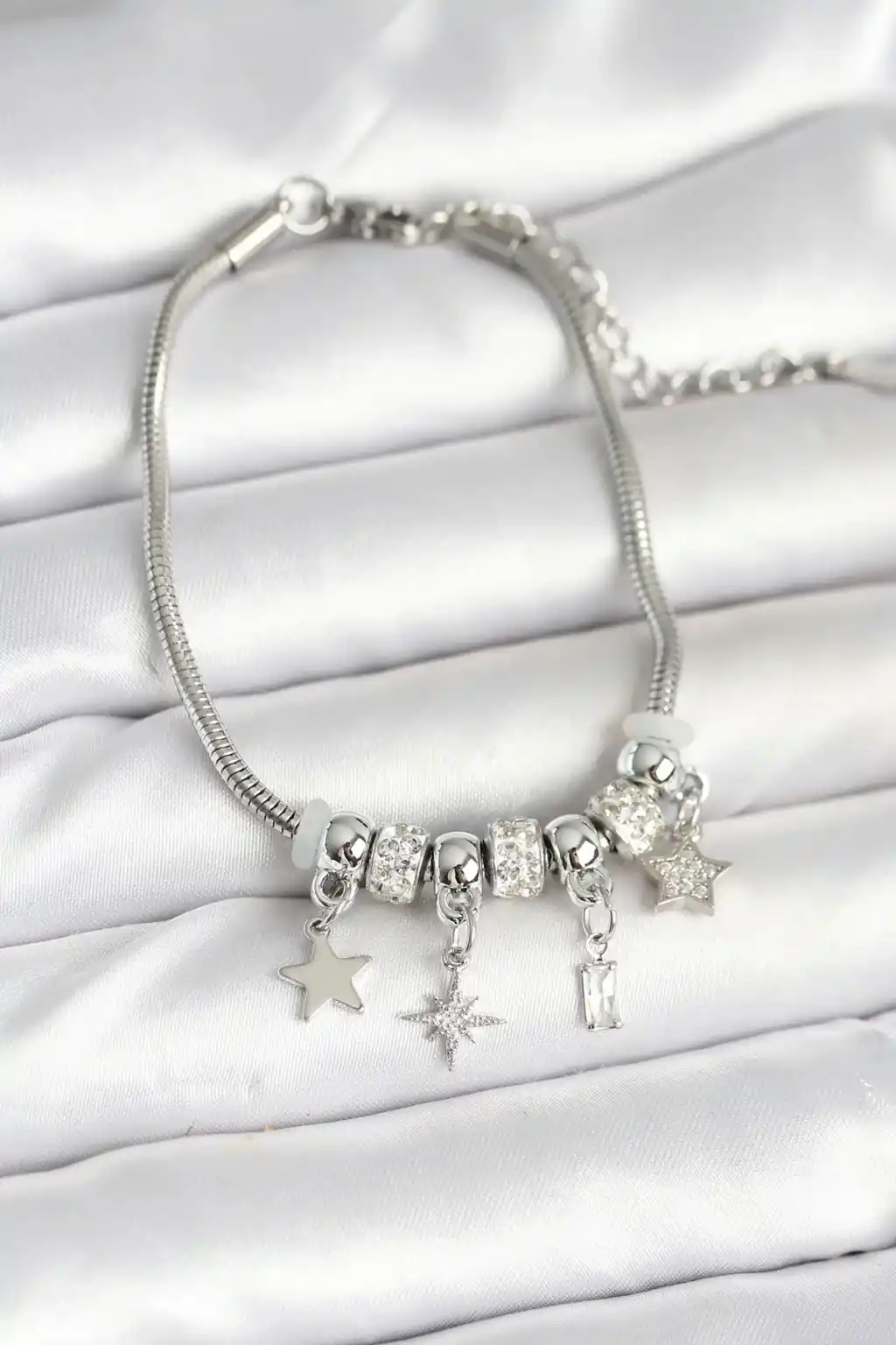 Pirinç Gümüş Renk Kutup Yıldızı Charmlı Kadın Bileklik