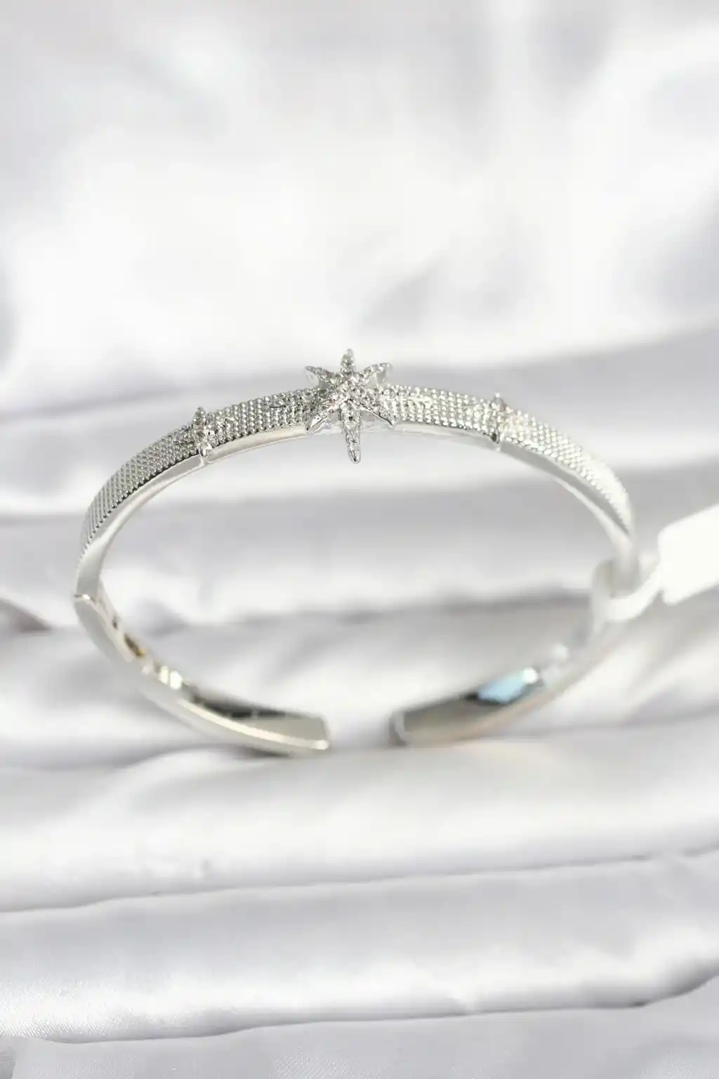 Pirinç Gümüş Renk Kutup Yıldızı Model Kadın Kelepçe Bileklik
