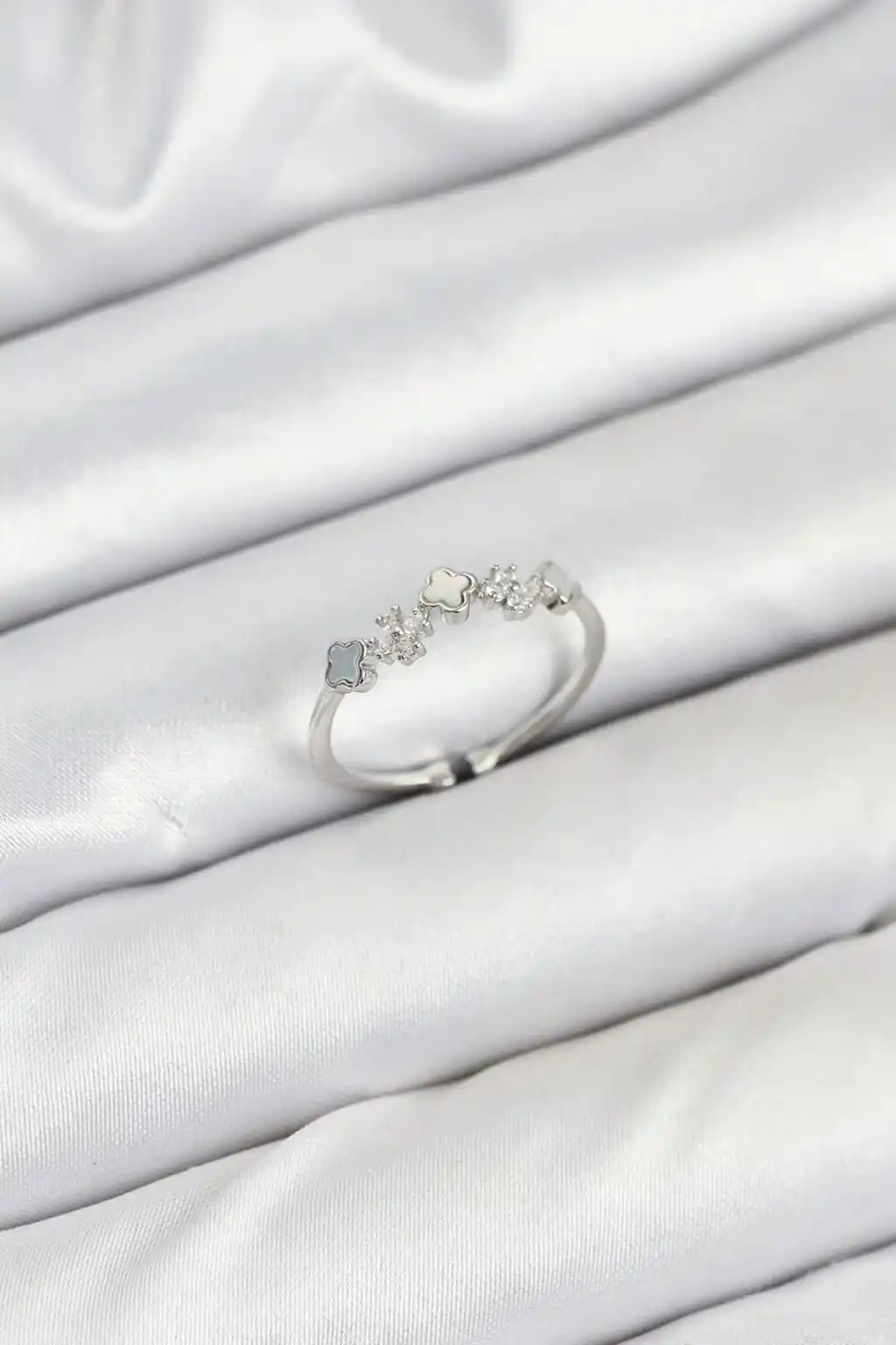 Pirinç Gümüş Renk Minimal Yonca Detaylı Kadın Yüzük