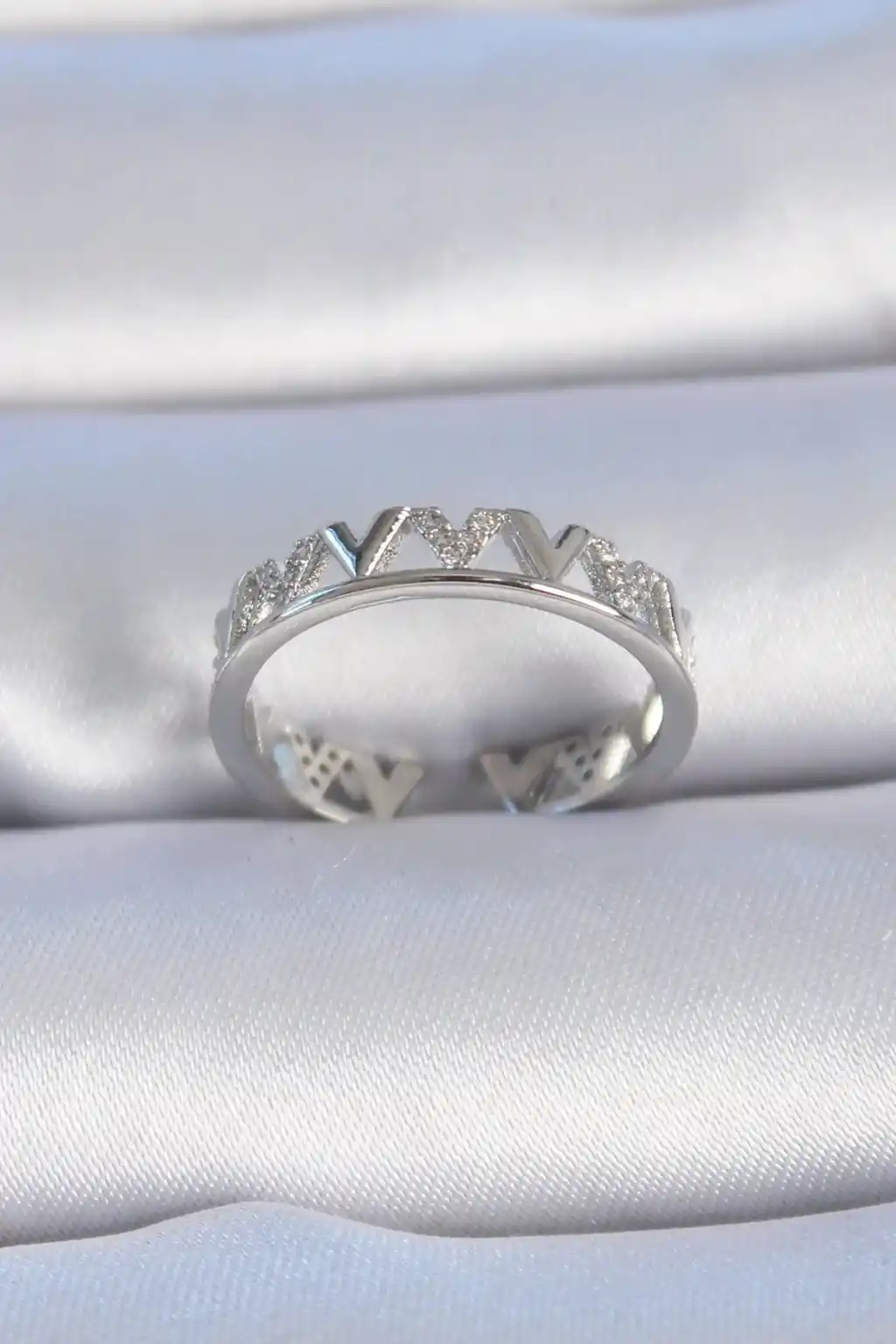 Pirinç Gümüş Renk "V" Model Zirkon Taşlı Kadın Yüzük