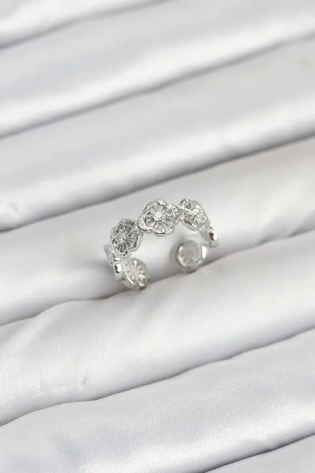 Pirinç Gümüş Renk Yonca Model Kadın Yüzük